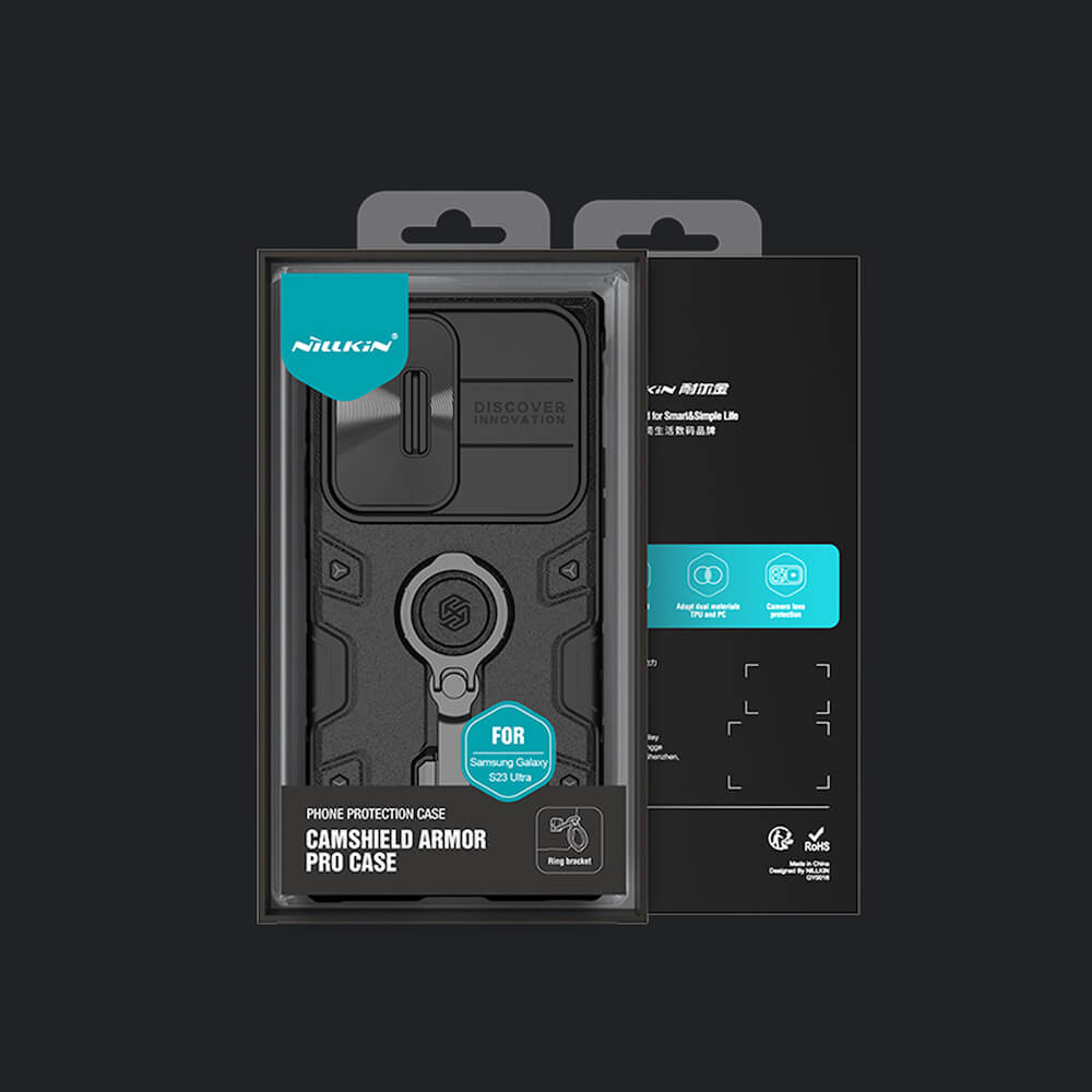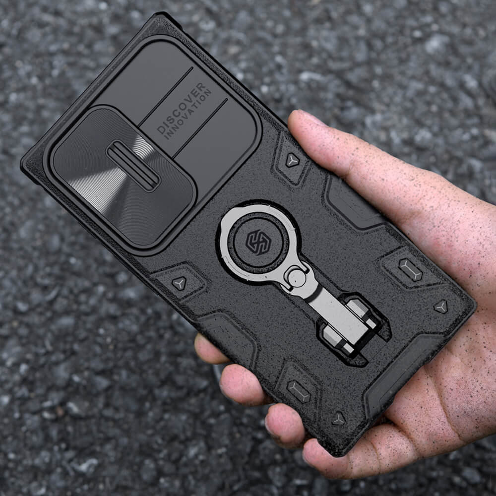 Nillkin CamShield Armor Pro Magnetic Hard Case - хибриден удароустойчив кейс с пръстен против изпускане за Samsung Galaxy S23 Ultra (черен)