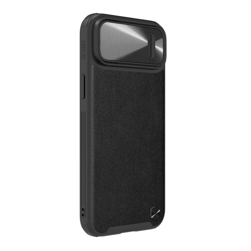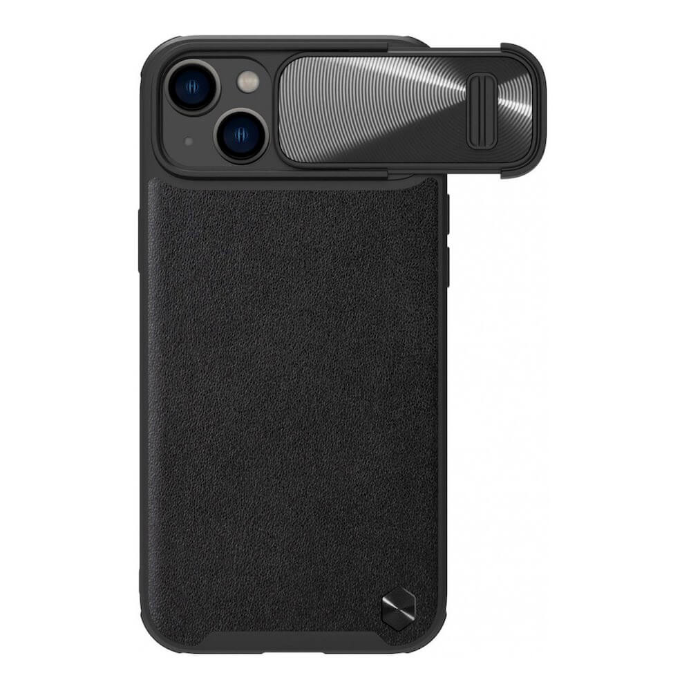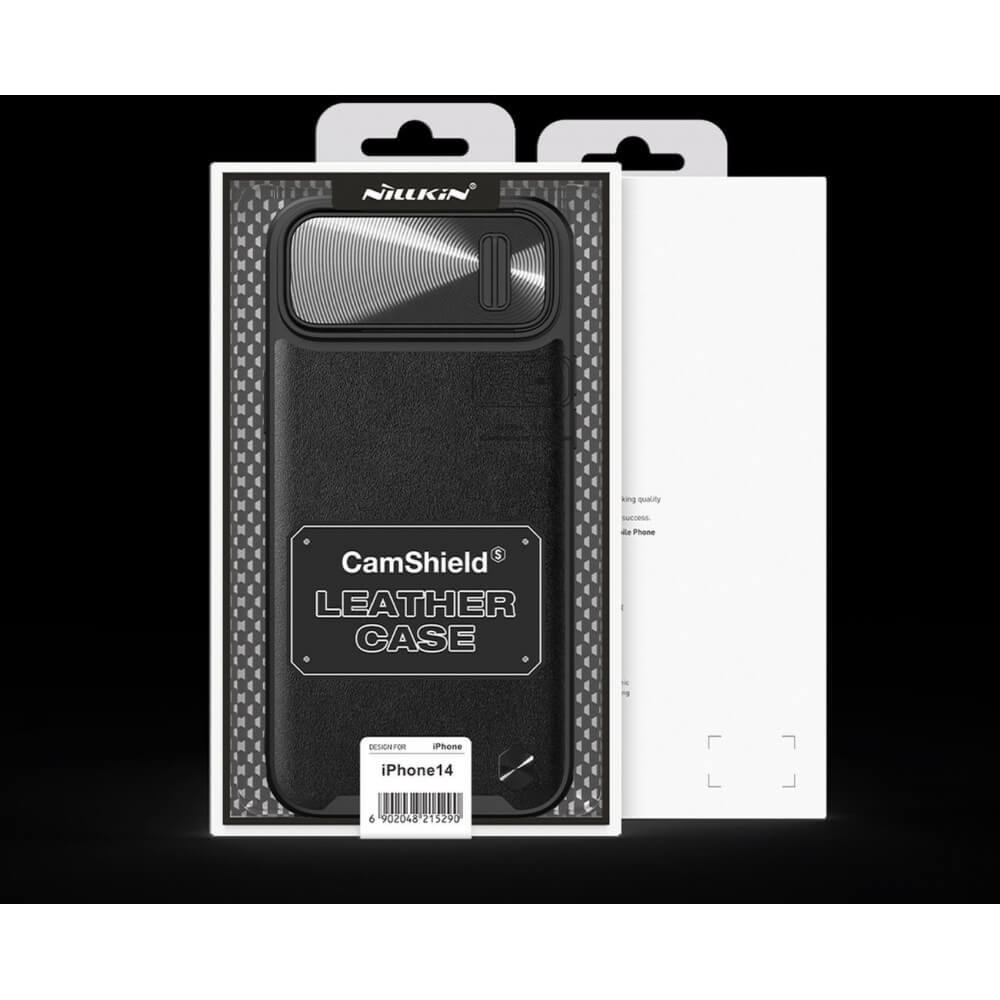Nillkin CamShield Leather S Case - хибриден удароустойчив кожен кейс с поставка против изпускане за iPhone 14 (черен)