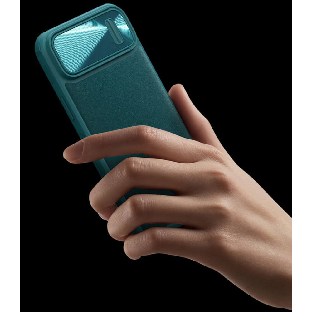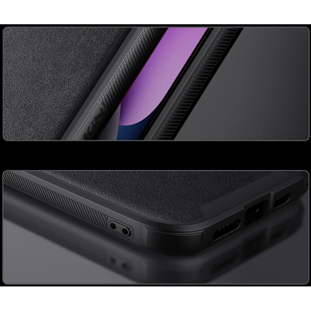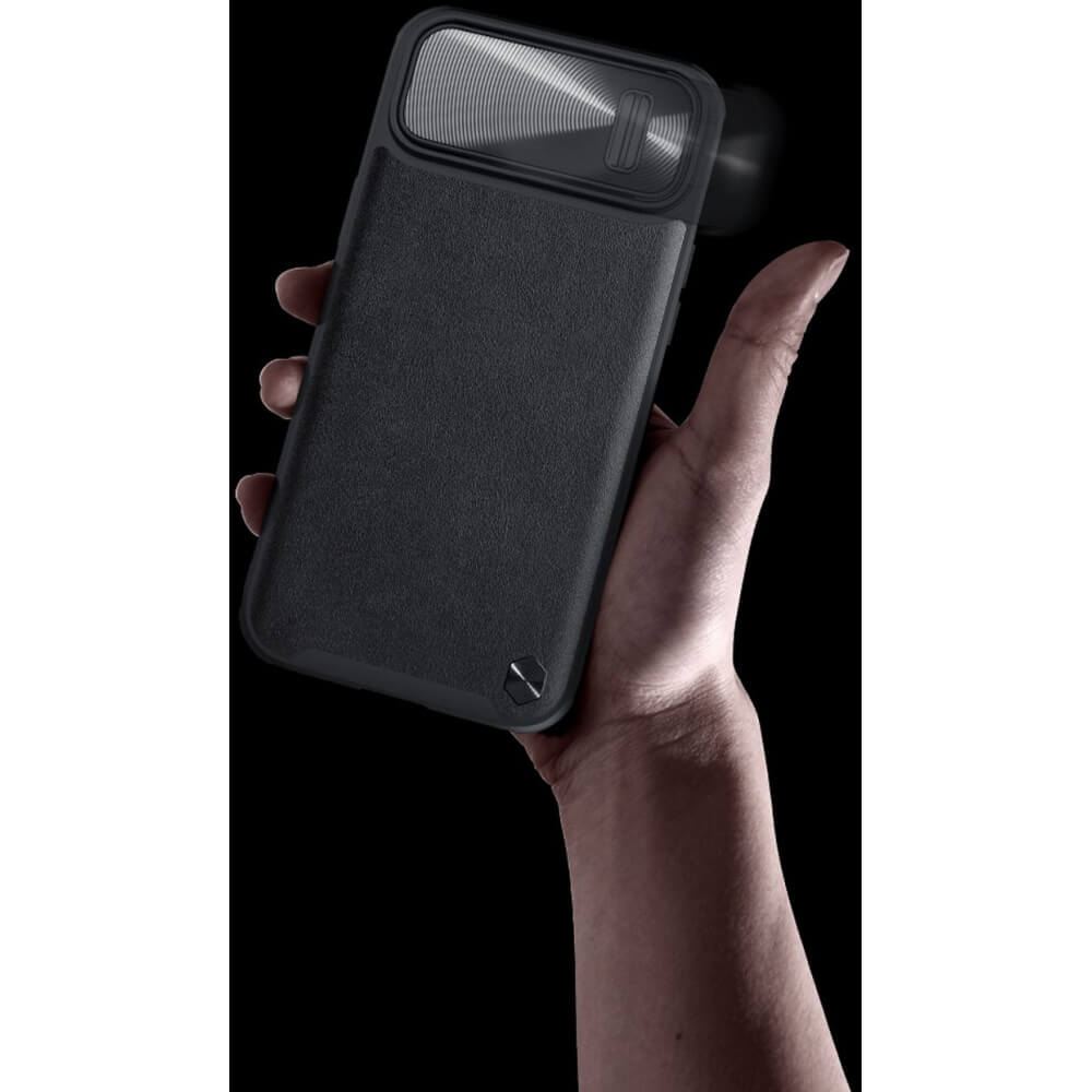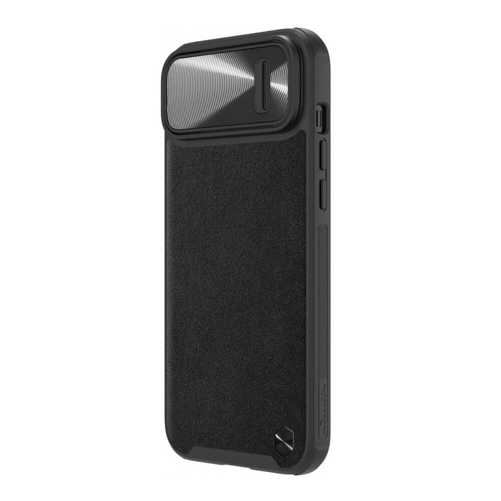 Nillkin CamShield Leather S Case - хибриден удароустойчив кожен кейс с поставка против изпускане за iPhone 14 (черен)