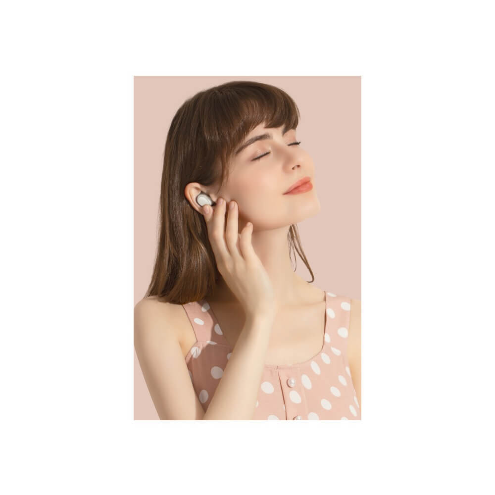 - Малките размери на слушалките и кейса позволяват удобно използване и носене. Можете лесно да поставите слушалките в кейса, който да ги зарежда докато са окачени на чанта ви или ги носите като аксесоар. Вземете музиката си с вас, където и да отидете
