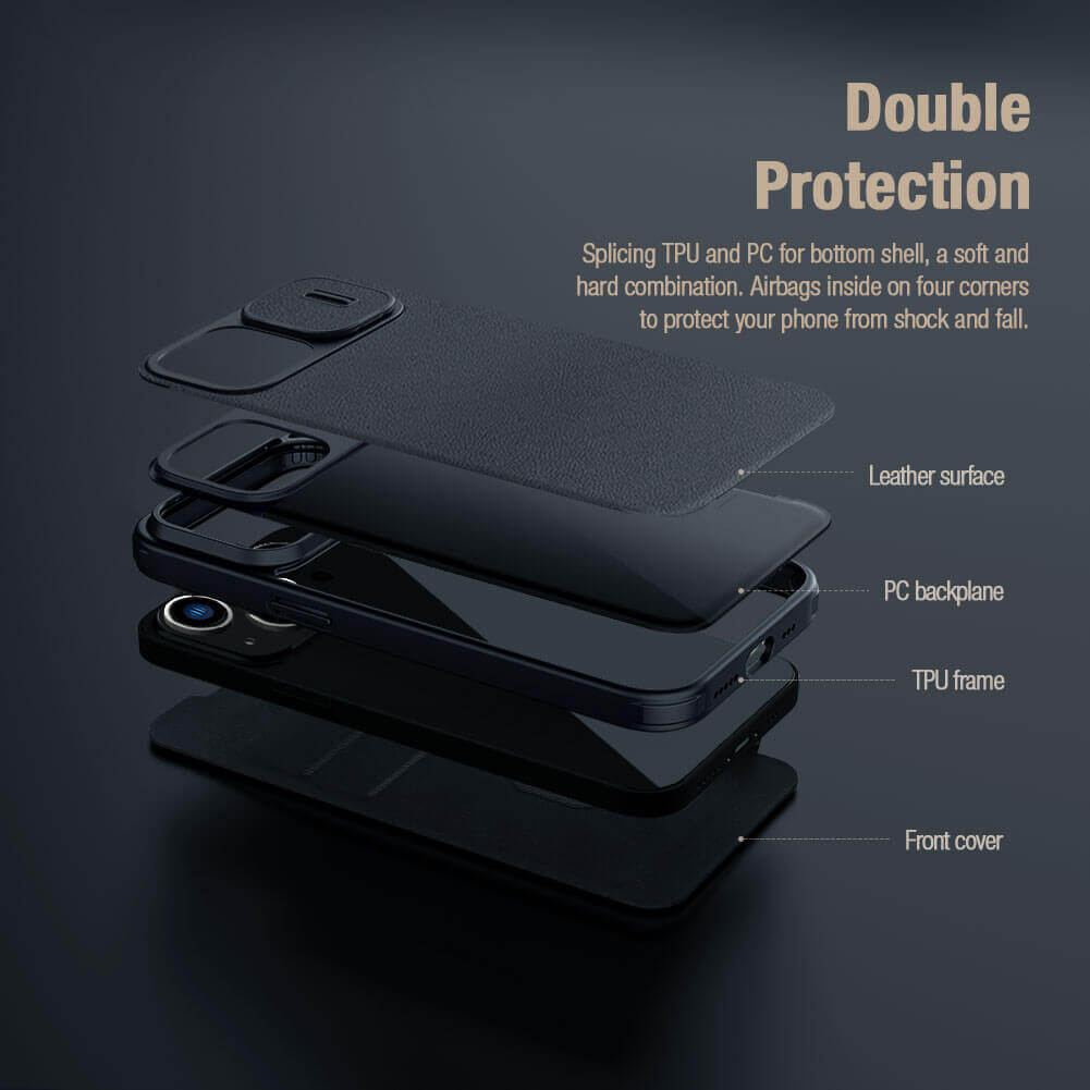 - Изработка от твърда поликарбонатна основа, облицована с полиуретанова кожа и термополиуретанова (TPU) рамка
