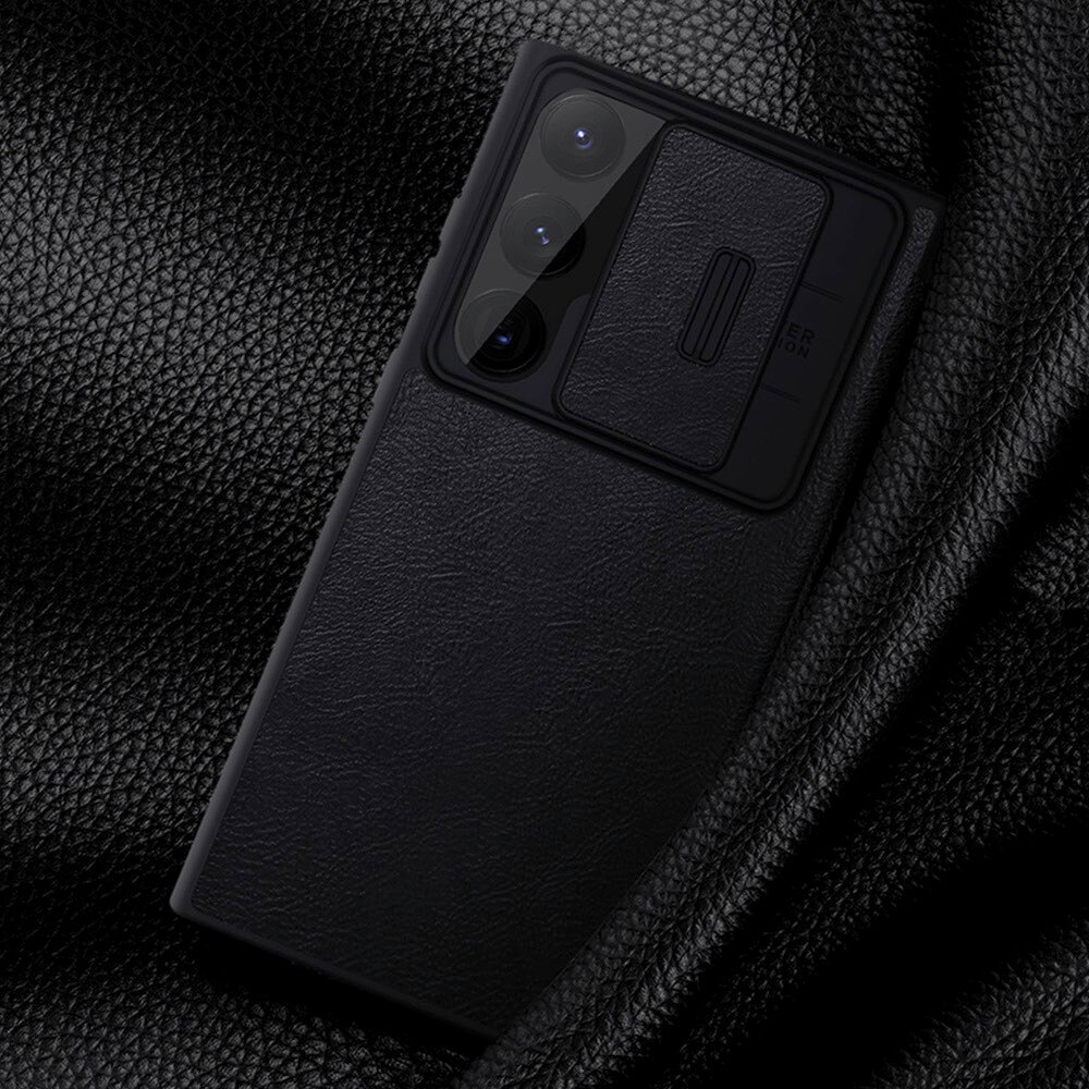 Nillkin Qin Book Pro Leather Flip Case - кожен калъф, тип портфейл за Samsung Galaxy S23 Ultra (черен)
