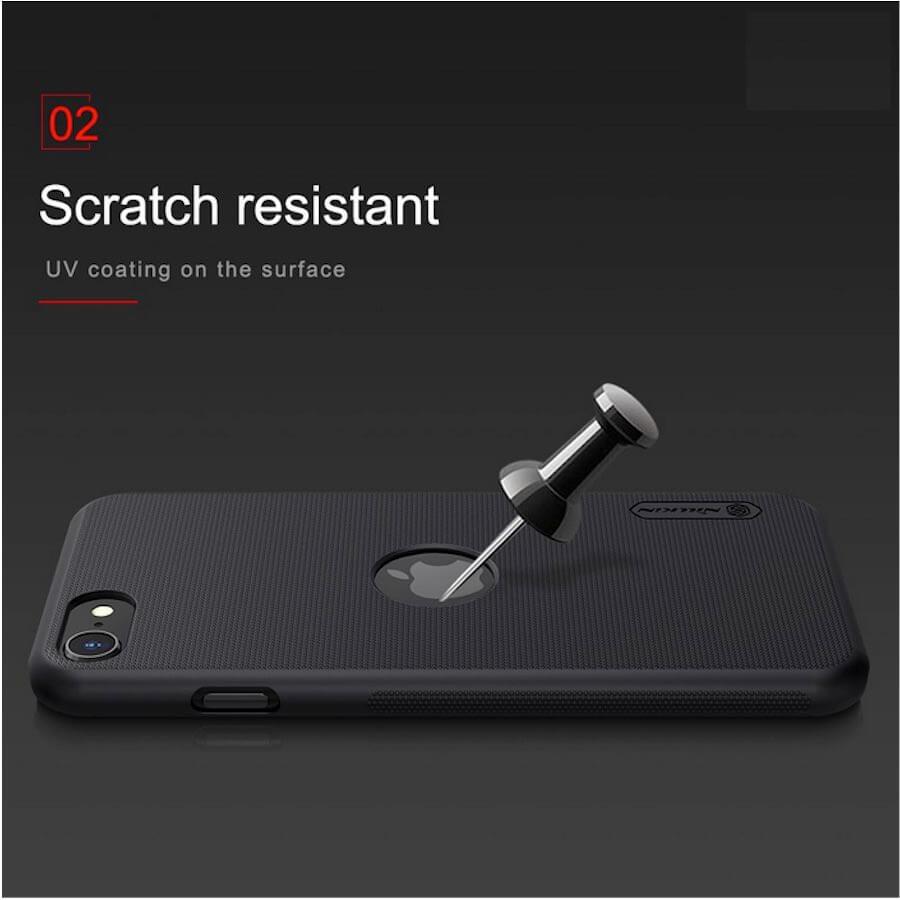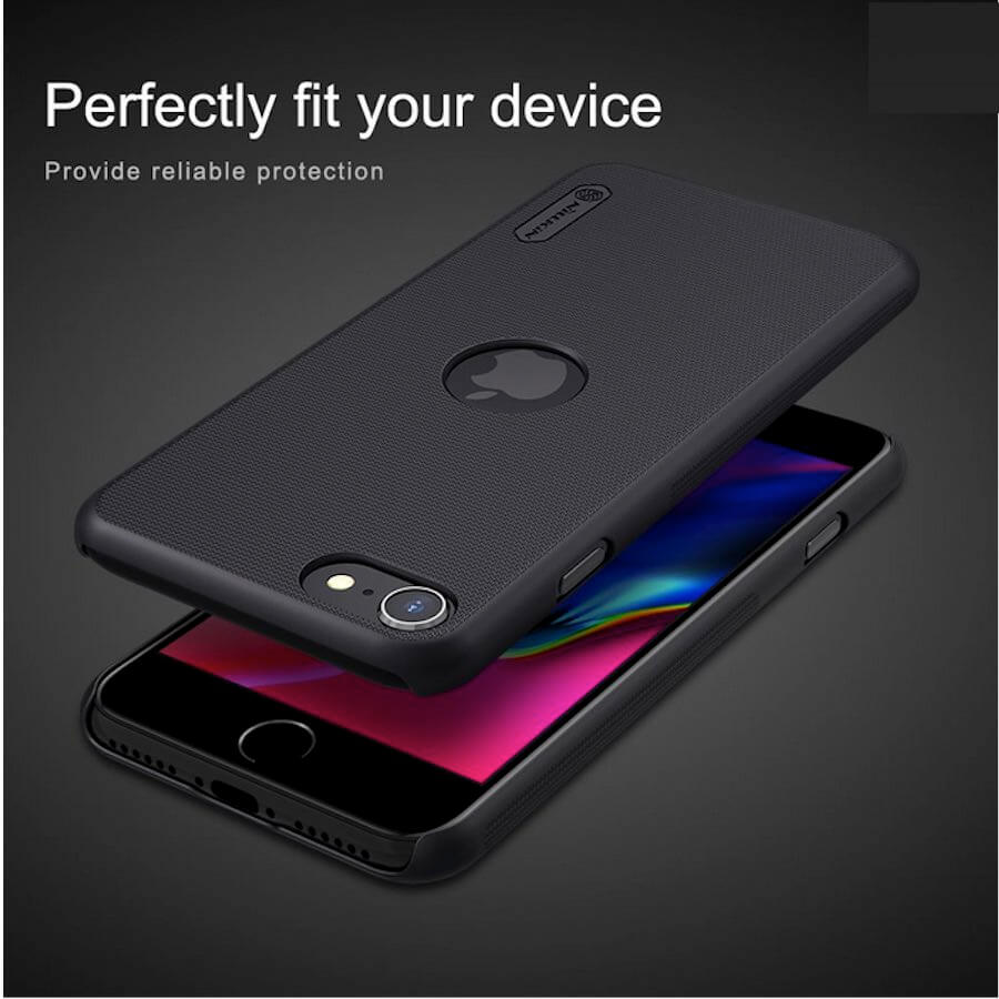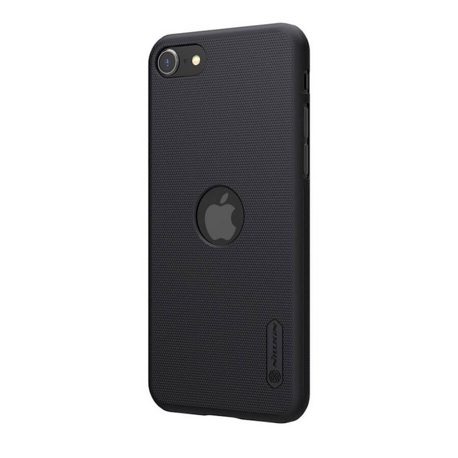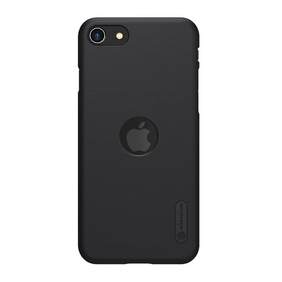 Nillkin Super Frosted Logo Cutout Case - поликарбонатов кейс с поставка за iPhone SE (2022), iPhone SE (2020), iPhone 8, iPhone 7 (черен)