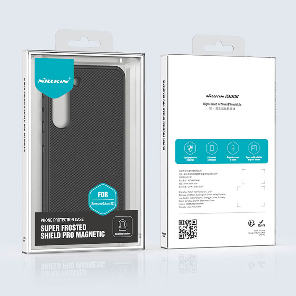Nillkin Super Frosted Pro Magnetic Case - хибриден удароустойчив кейс с MagSafe за Samsung Galaxy S23 (черен)