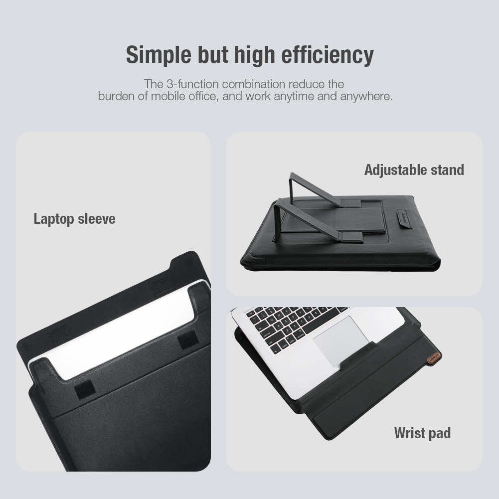 Nillkin Versatile Laptop Sleeve Horizontal 16 3in1 - калъф с цип и вградена поставка за преносими компютри до 16 инча (черен)