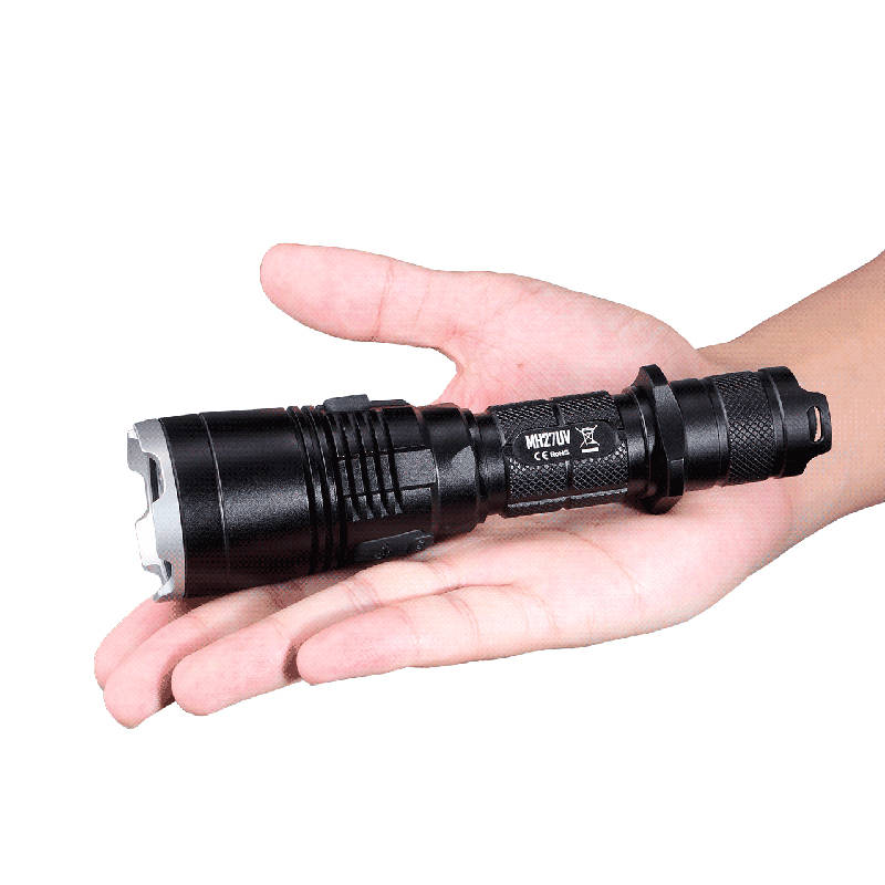 - Съвместимост – MH27UV е тактическо оборудване, предназначено за ситуации, изискващи специализирано оборудване. Фенерът е съвместим с повечето подобни аксесоари, като филтърни капачки, стойки за оръжие и дистанционни превключватели на коланите. Нещо повече, устройството е оборудвано със специален метален пръстен, гарантиращ стабилност и допълнително повишаване на прецизността в ситуации, които го изискват. Всичко това, съчетано с IPX8 водоустойчивост, гарантира надеждността на оборудването при практически всякакви условия