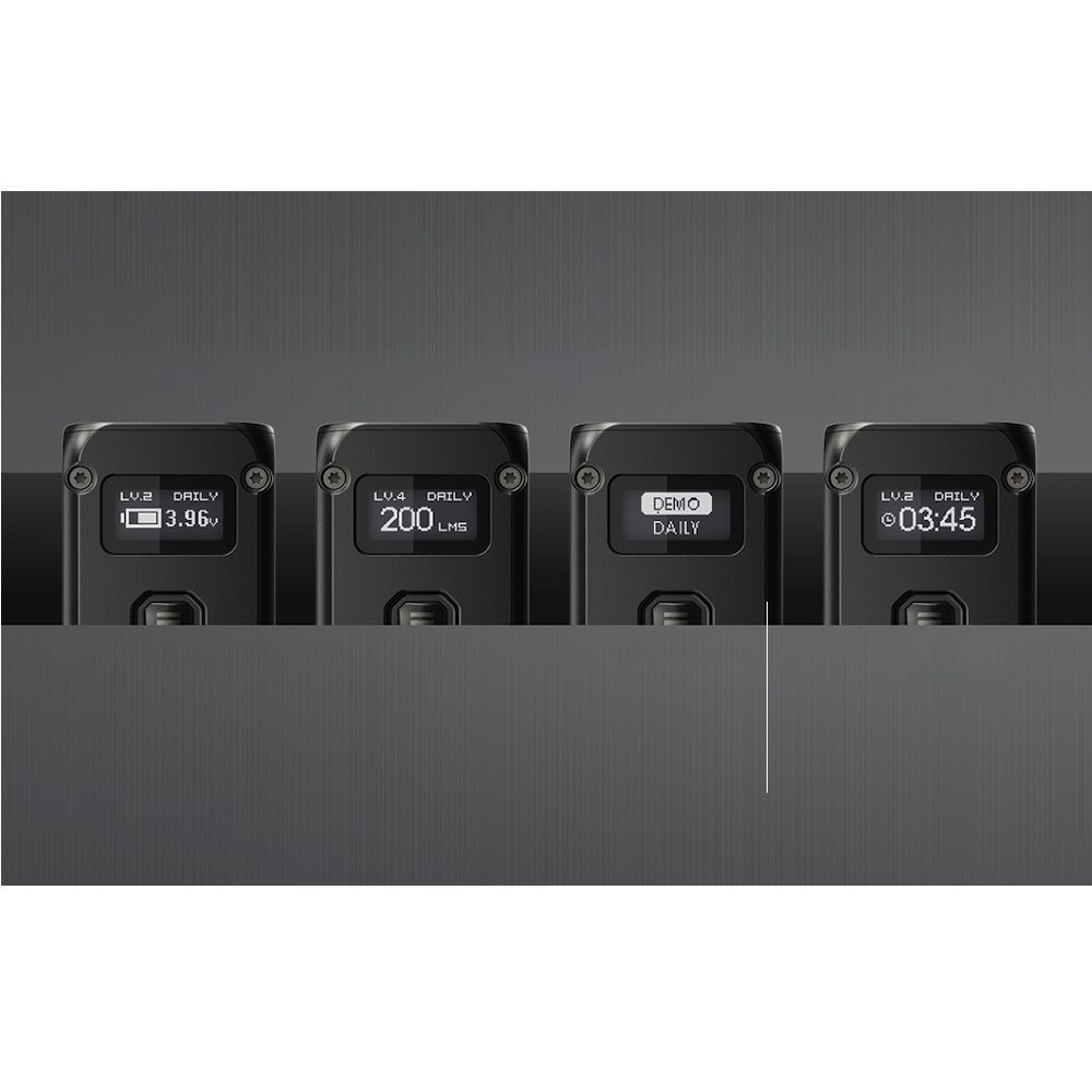 - OLED дисплей, който можете да използвате, за да проверите нивото на батерията, напрежението, зададената яркост, текущия режим или оставащото време на работа