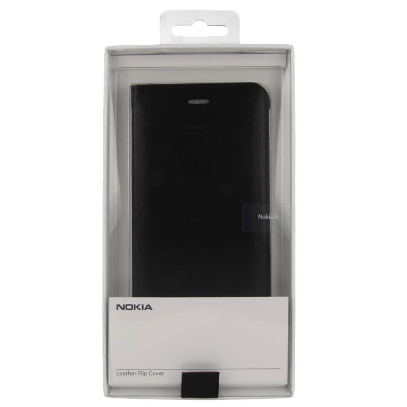 Nokia Leather Flip Cover CP-801 - оригинален кожен калъф с отделение за кр. карта за Nokia 8 (черен)
