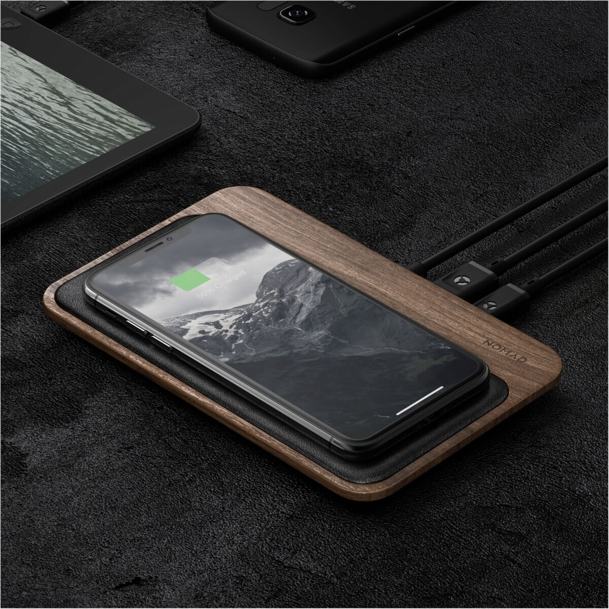 - Nomad Base Station е изработена от истинско лешниково дърво, като това гарантира уникалната изработка на всяка една поставка