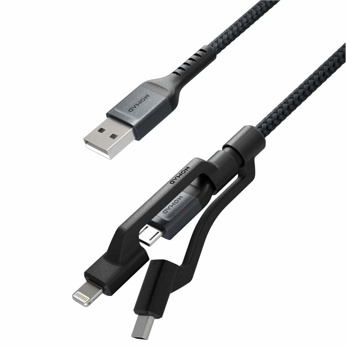 Nomad Kevlar USB-A to Universal Cable - здрав кевларен кабел за устройства с Lightning, microUSB и USB-C порт (150 см) (черен)