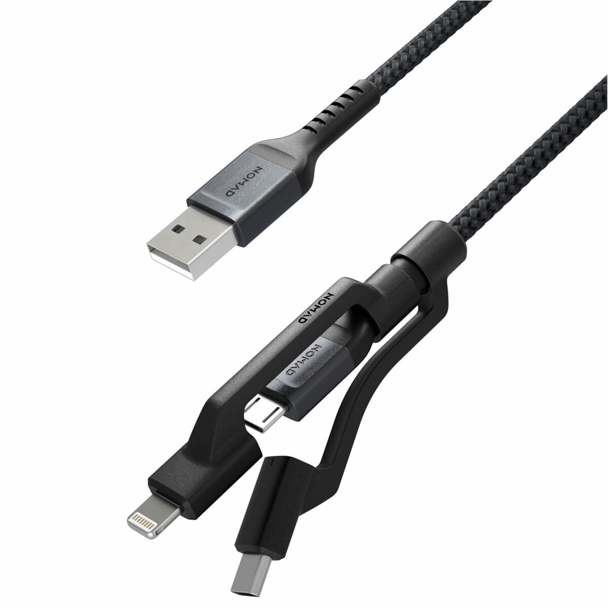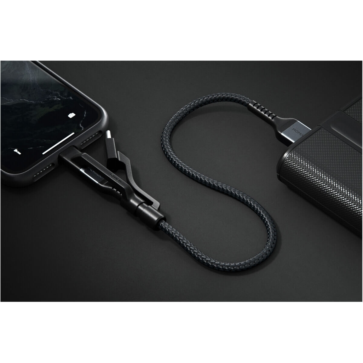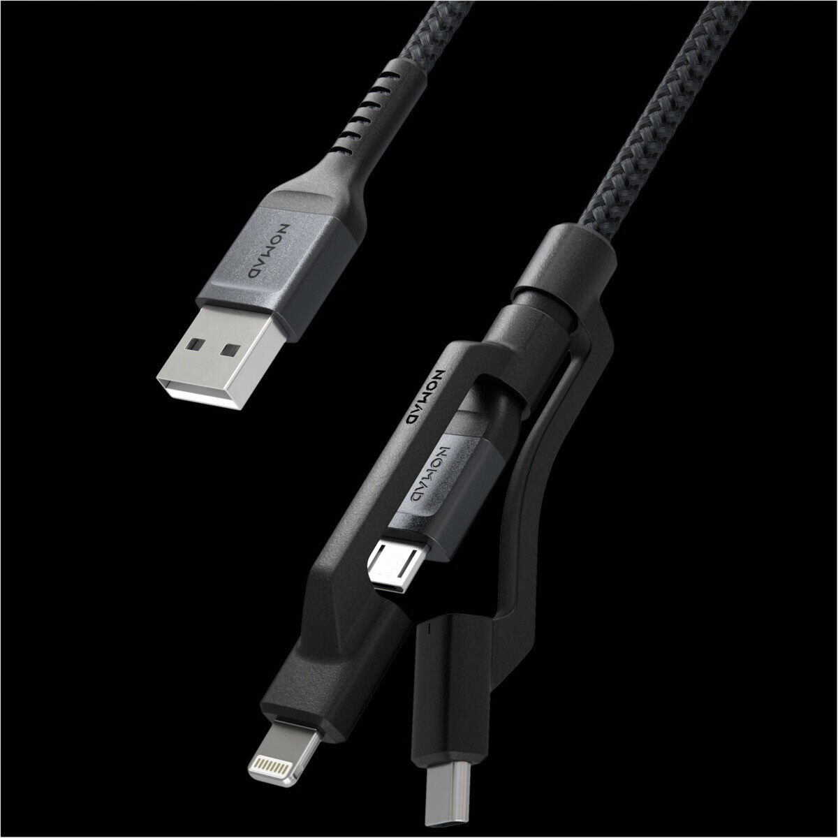 Nomad Rugged USB-A to Universal Cable - здрав кабел с въжена оплетка за устройства с Lightning, microUSB и USB-C порт (30 см) (черен)