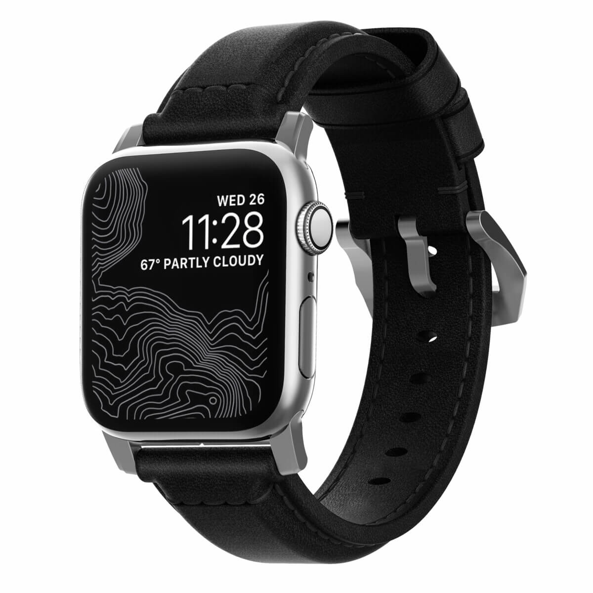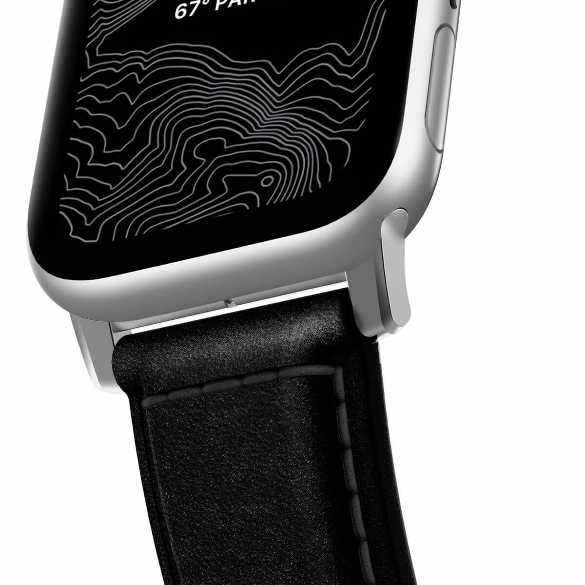 Nomad Strap Traditional Leather - кожена (естествена кожа) каишка за Apple Watch 42мм, 44мм (черен-сребрист)