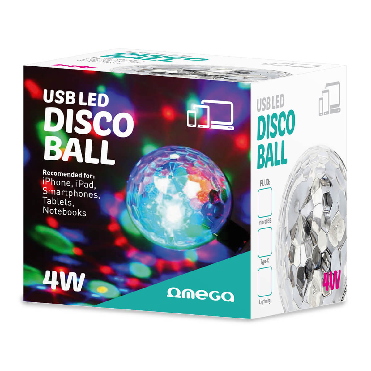Omega Magic Disco Ball USB To USB-C - светеща с ритъма на музиката диско топка за устройства с USB-C конектор (бял)