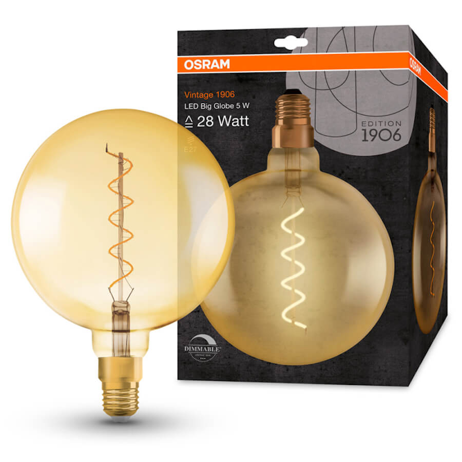 - 1 х Osram Vintage 1906 LED Big Globe 28W E27 ES Bulb