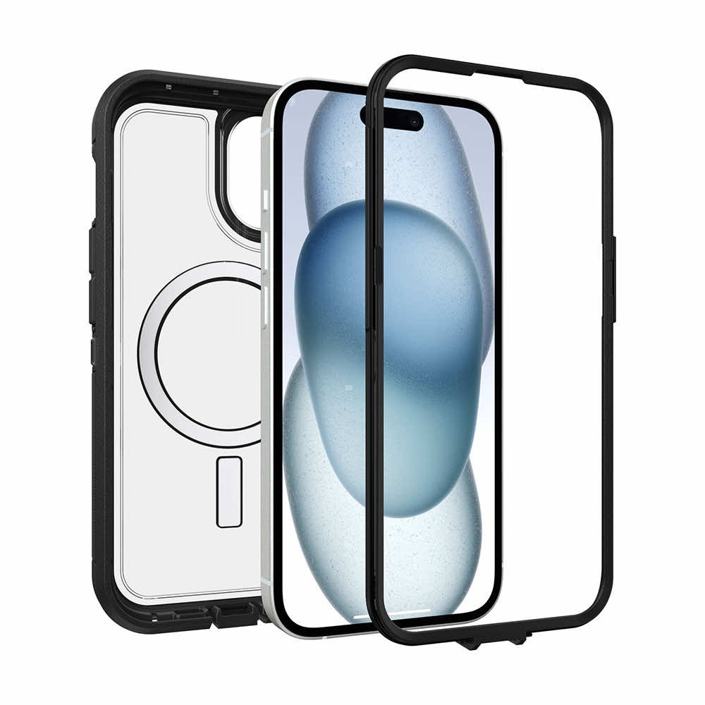 Otterbox Defender XT Case - хибриден удароустойчив кейс с MagSafe за iPhone 15, iPhone 14, iPhone 13 (черен-прозрачен)