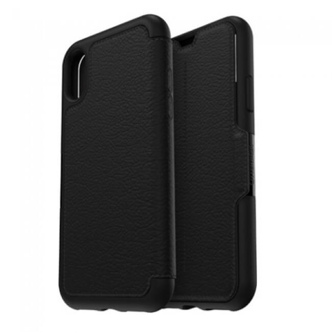 Otterbox Strada Leather Folio Case - кожен флип калъф с висока защита за iPhone XS, iPhone X (черен)
