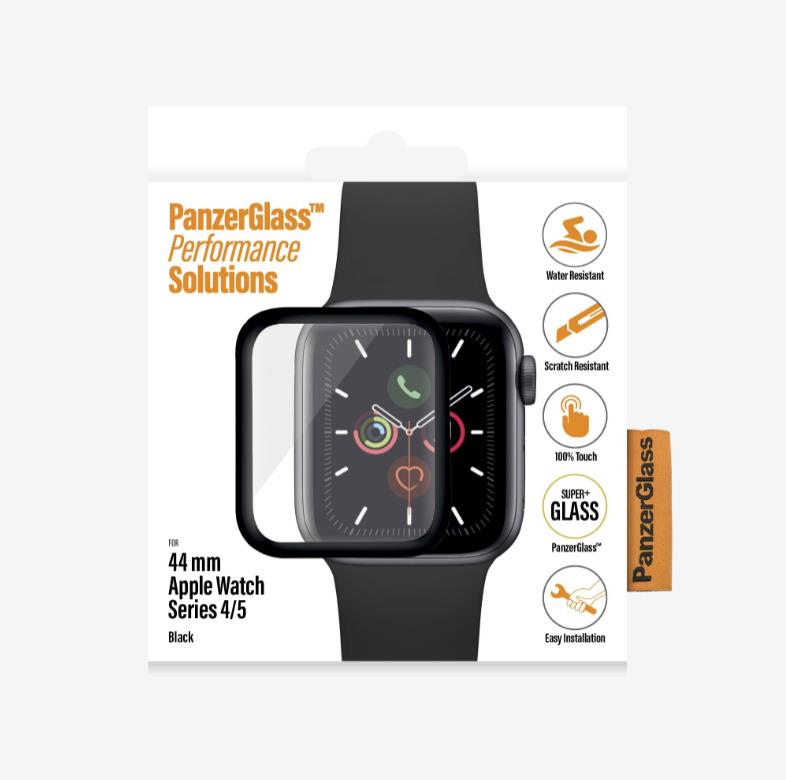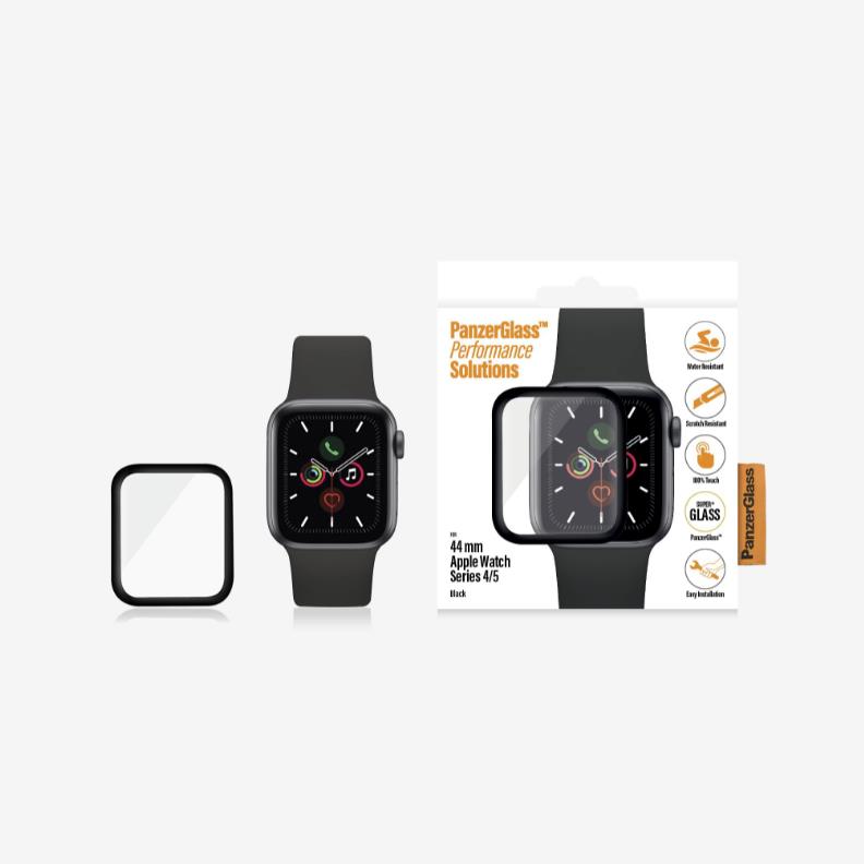 PanzerGlass Premium Glass Pro - калено стъклено защитно покритие с извити ръбове за дисплея на Apple Watch Series 4/5/6 (44mm) (черен)