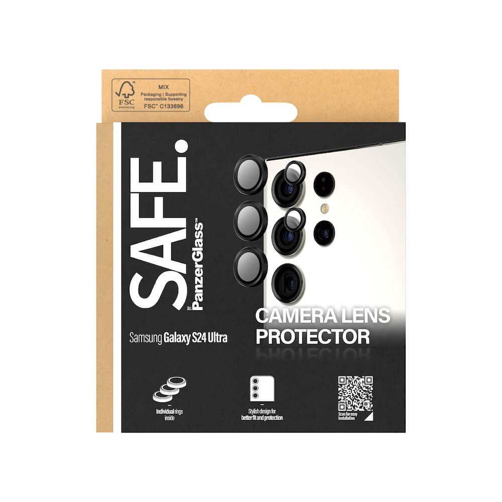 PanzerGlass Safe Camera Lens Protector - предпазни стъклени защитни лещи за камерата на Samsung Galaxy S24 Ultra (черен-прозрачен)