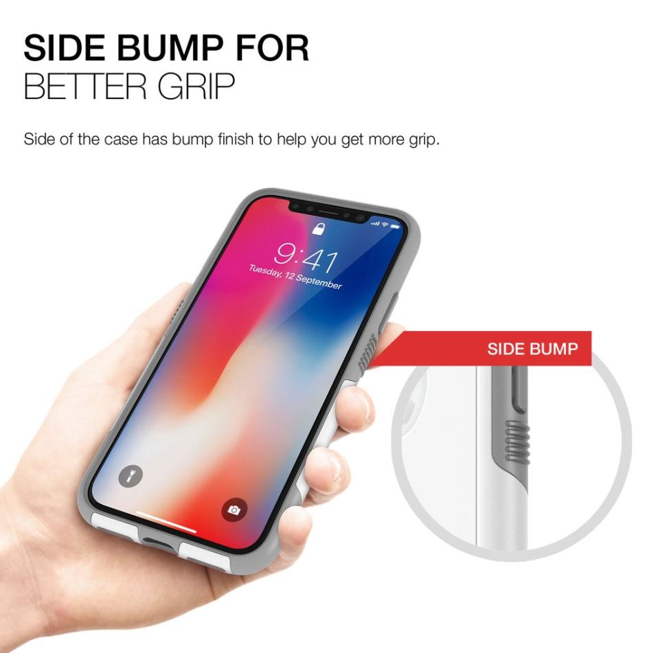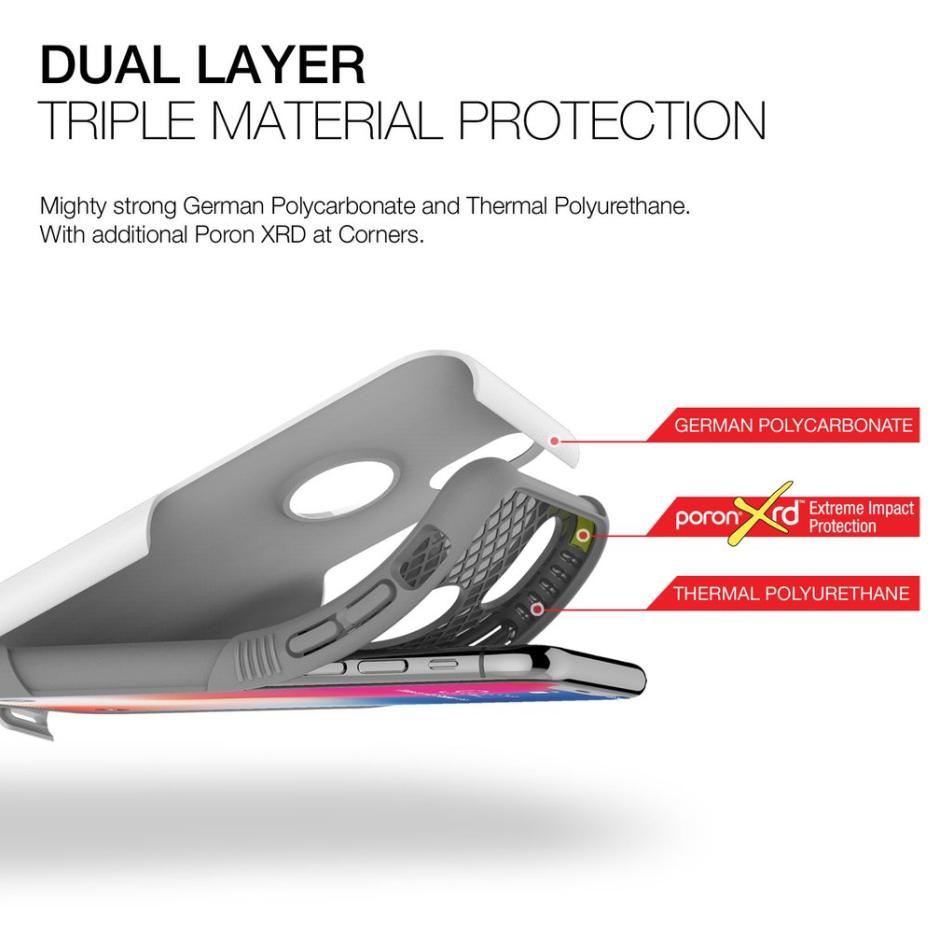 - Хибриден кейс, изработен от изключително здрав и устойчив поликарбонат (за външната част), съчетан с удароустойчив термополиуретан (за вътрешната част)