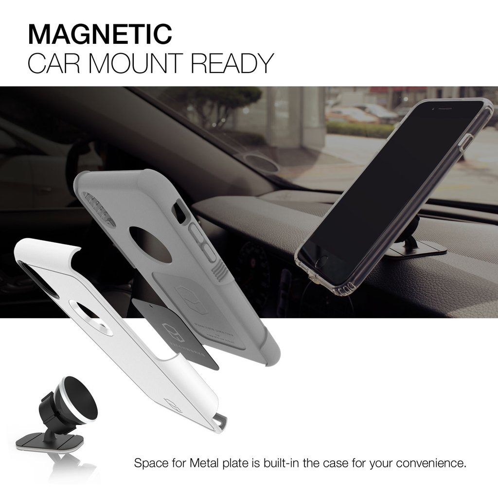 - Кейсът е съвместим с поставки с магнитен захват, благодарение на вградената пластина между TPU и поликарбонатовия слой