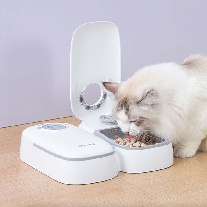 - Планирайте вечерята на вашия домашен любимец – заключващите се капаци, торбата с лед и вграден таймер позволяват да планирате вкусната храна на котката си предварително. Просто напълнете отделенията преди да напуснете дома си и задайте часа, а дозаторът ще сервира храната в точното време. По този начин ще се погрижите за редовното хранене на вашата котка, а поднесената храна ще бъде винаги свежа и апетитна за вашия домашен любимец