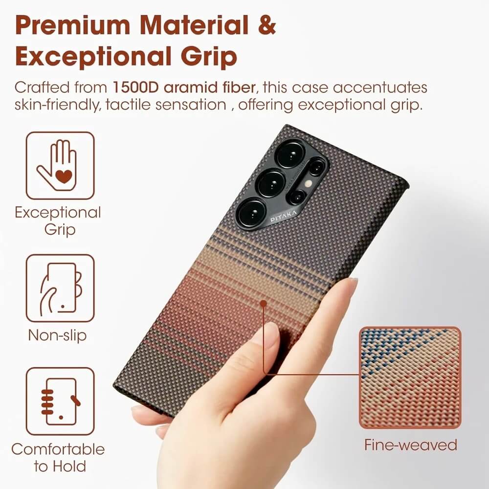 Pitaka MagEZ 4 1500D Aramid Fiber MagSafe Case - кевларен кейс с MagSafe за Samsung Galaxy S24 Ultra (шарен)