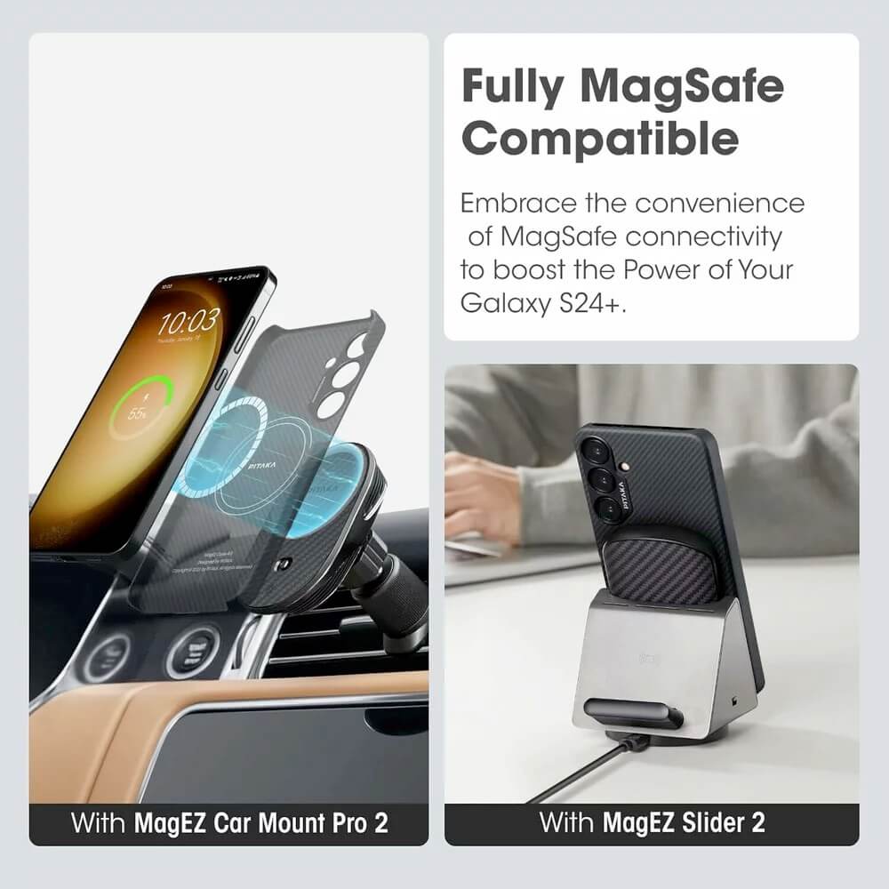 Pitaka MagEZ 4 600D Aramid Fiber MagSafe Case - кевларен кейс с MagSafe за Samsung Galaxy S24 Plus (черен-сив)