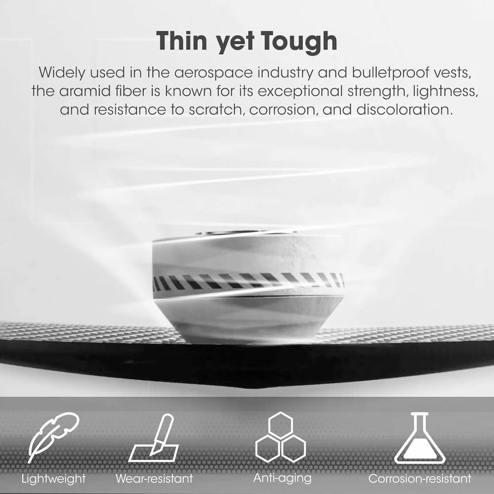 • Изключително тънък профил с дебелина от едва 0.95 мм и тегло 17.3 грама