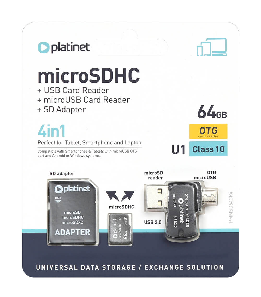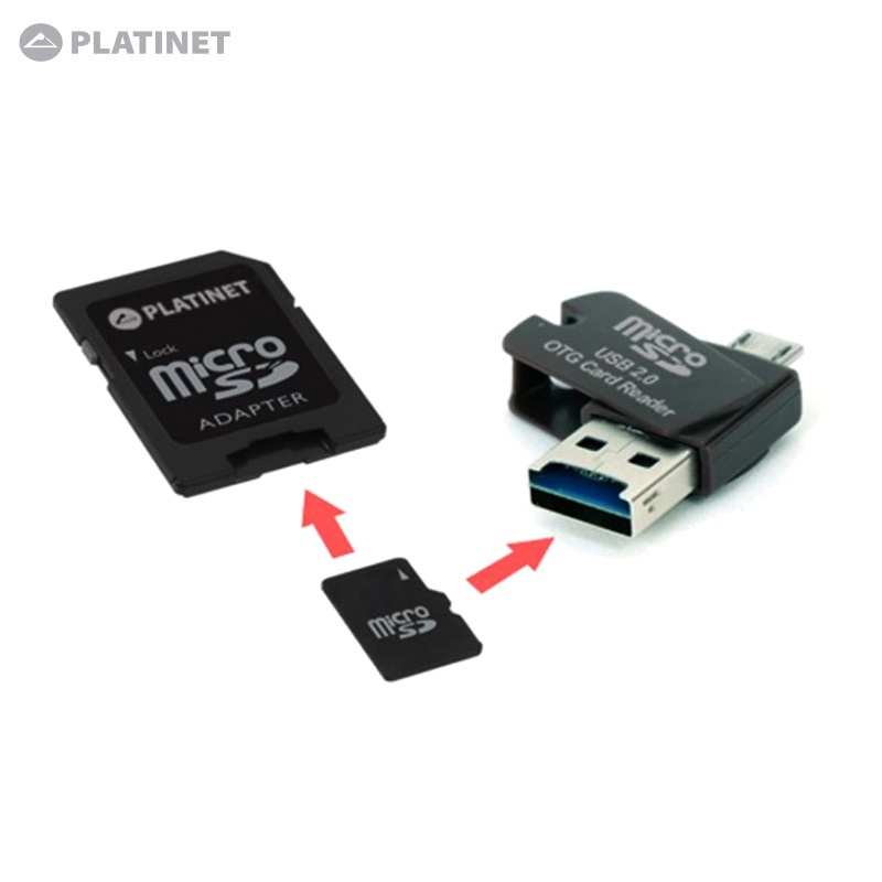 Platinet 4in1 64GB USB Flash Drive + Micro SD card + micro USB OTG Reader - micro USB четец за microSD карти и памет карта със SD адаптер (клас 10)