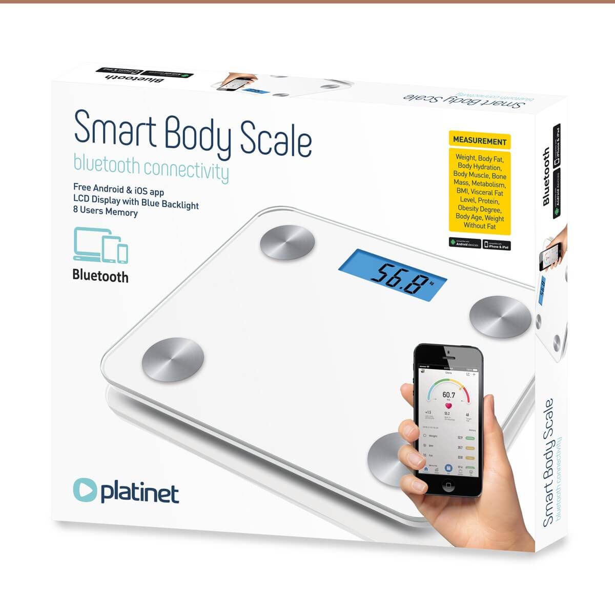 Platinet Bathroom Body Scale Smart Bluetooth - безжичен кантар за измерване на тегло, телесна маса, мазнини и др. за iOS и Android (бял)