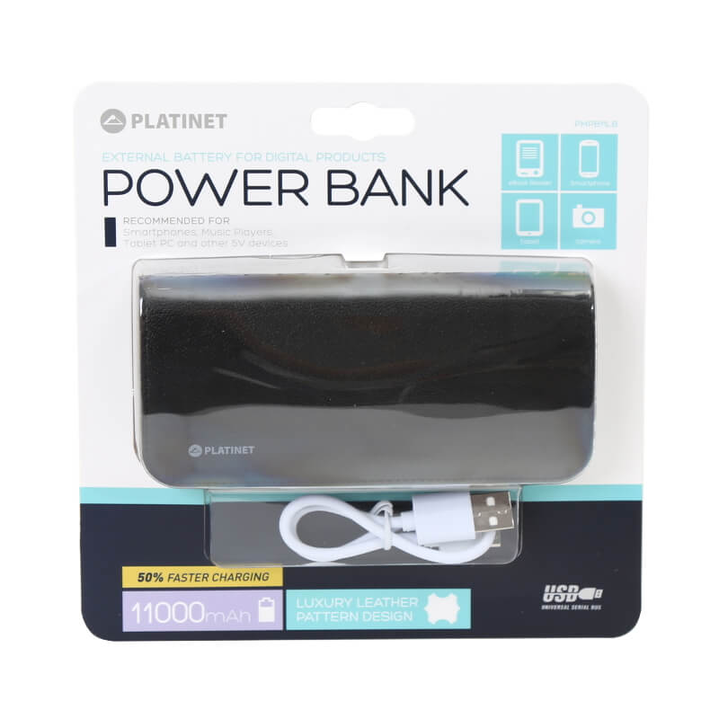 Platinet Power Bank Leather 11000 mAh - външна батерия с 2 USB изходa за таблети и смартфони (черен)