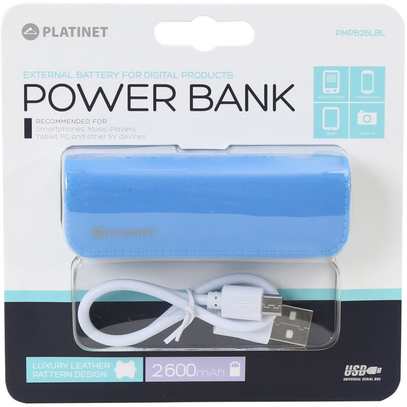 Platinet Power Bank Leather 2600mAh + microUSB cable - външна батерия 2600mAh за зареждане на мобилни устройства (син)