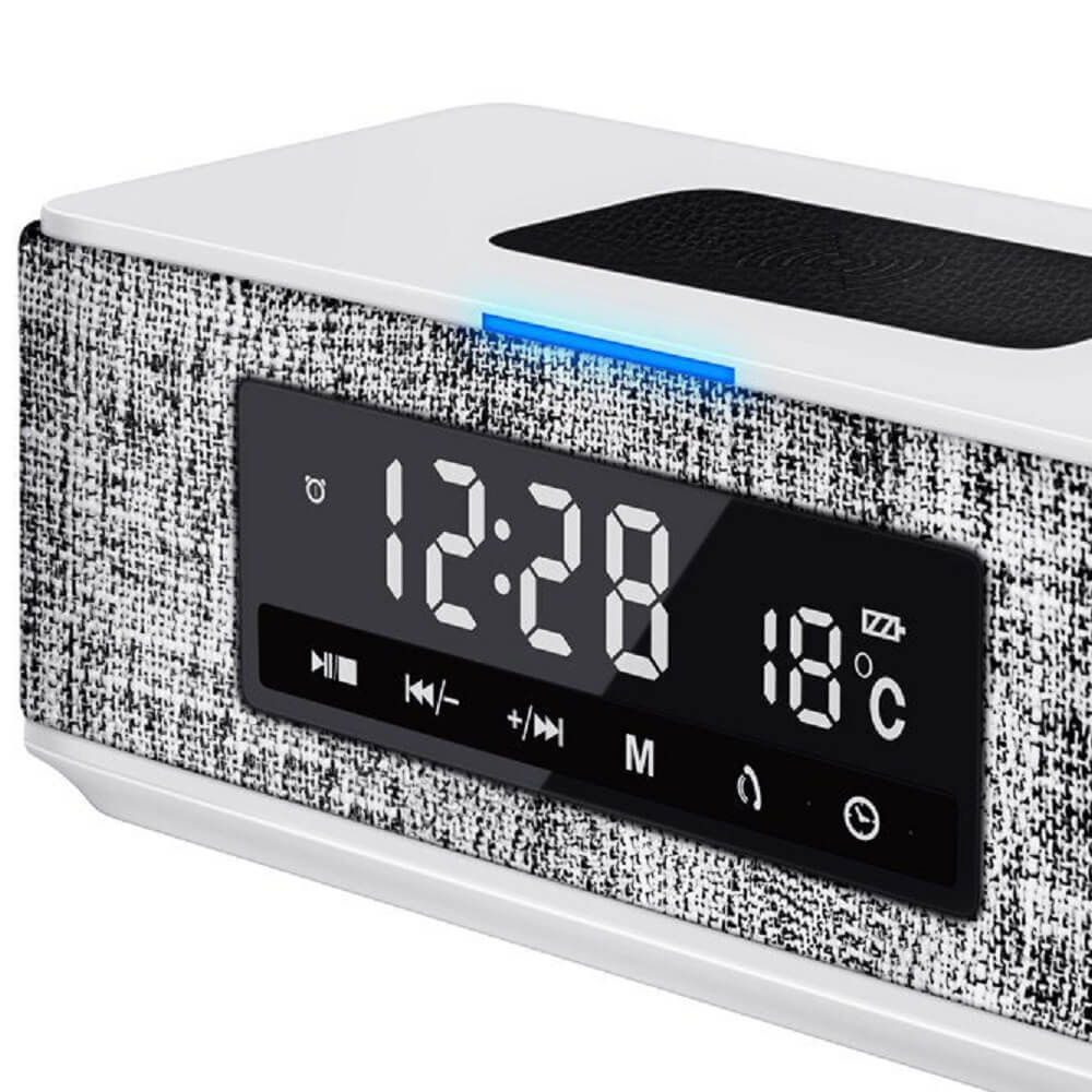 Platinet Speaker Daily Bluetooth, QI, FM And Clock - безжичен портативен спийкър с FM радио, часовник с аларма и поставка за безжично зареждане (бял)