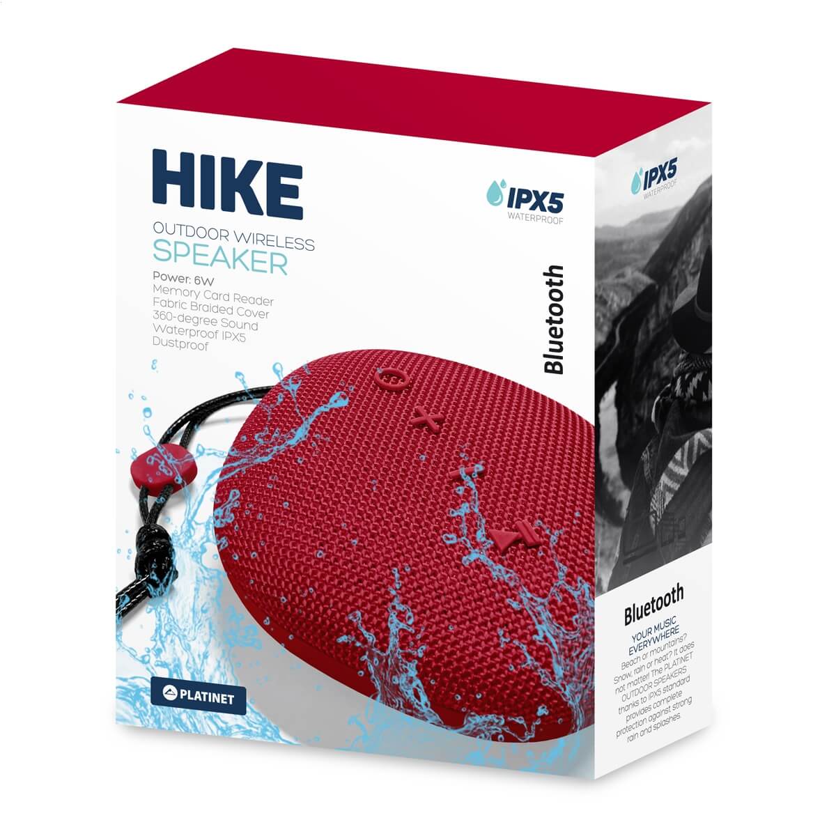 Platinet Speaker PMG11 Hike Bluetooth 6W IPX5 - безжичен портативен спийкър за мобилни устройства (червен)