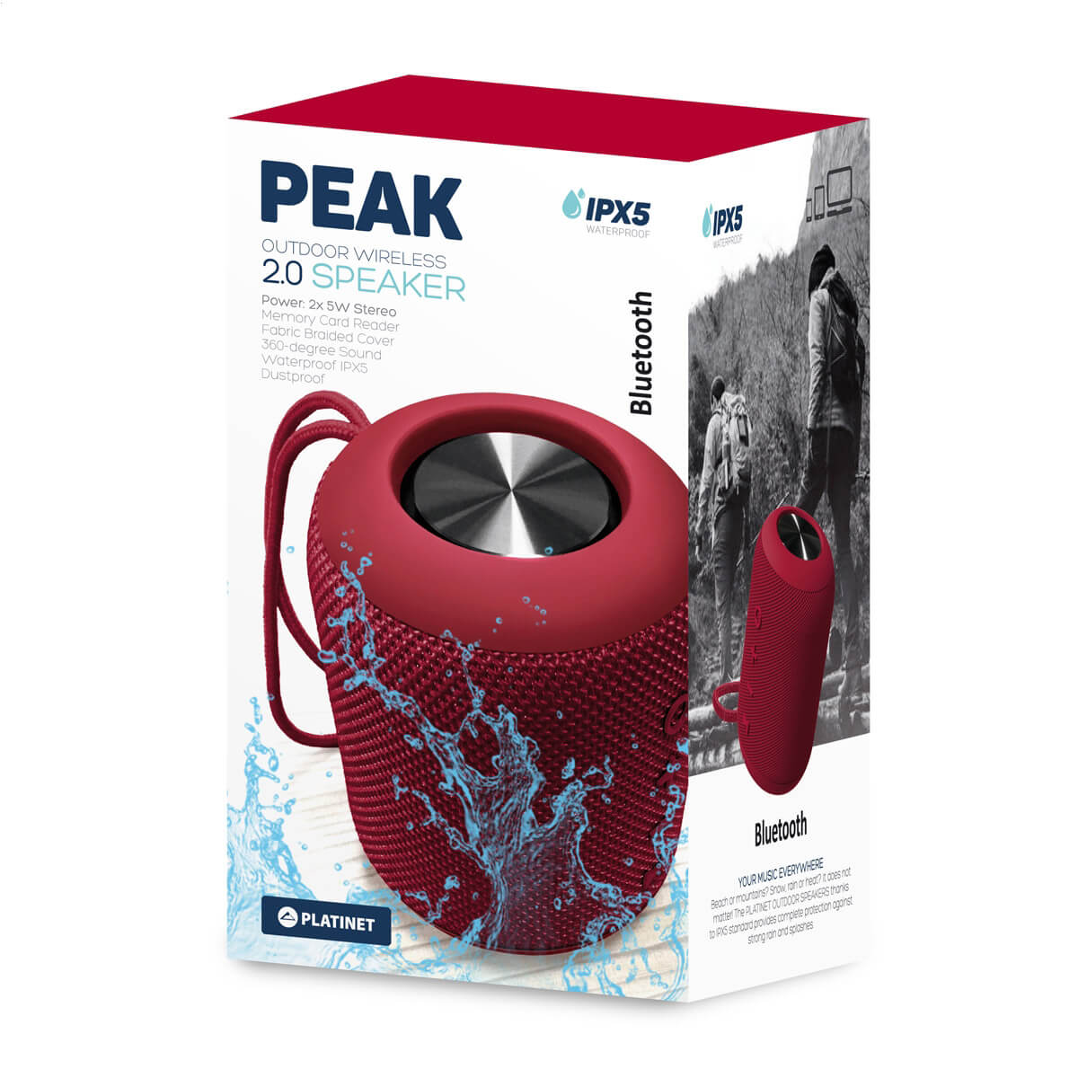 Platinet Speaker PMG13 Peak Bluetooth 10W IPX5 - безжичен портативен спийкър за мобилни устройства (червен)