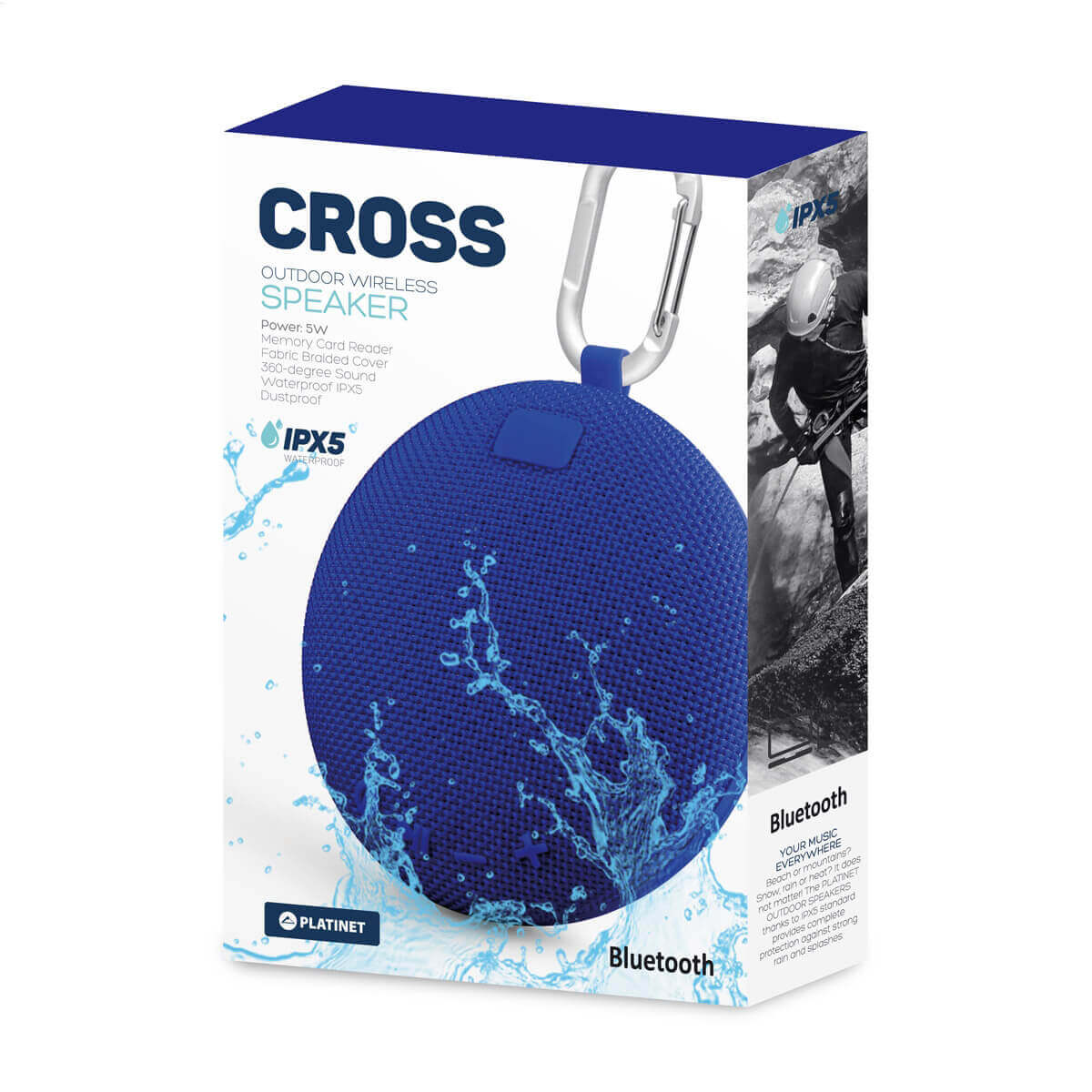 Platinet Speaker PMG14 Cross Bluetooth 5W IPX5 - безжичен портативен спийкър (с карабинер) за мобилни устройства (син)