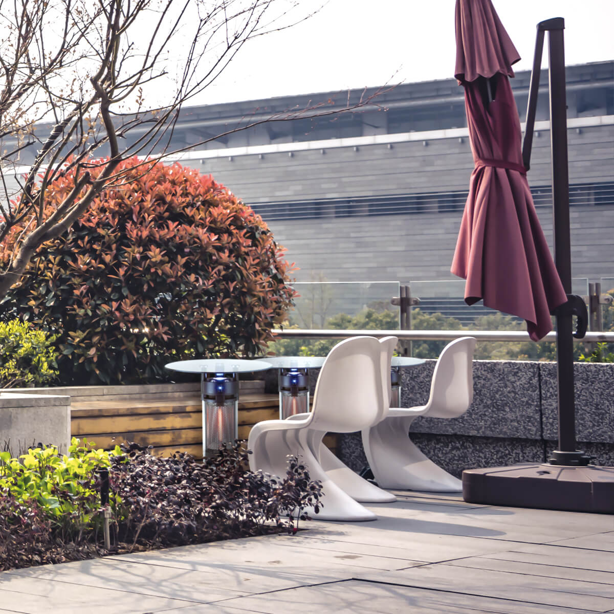 - Използва кварцова и инфрачервена технология, за да отоплява помещенията и външните пространства още по-ефективно, безопасно и икономично