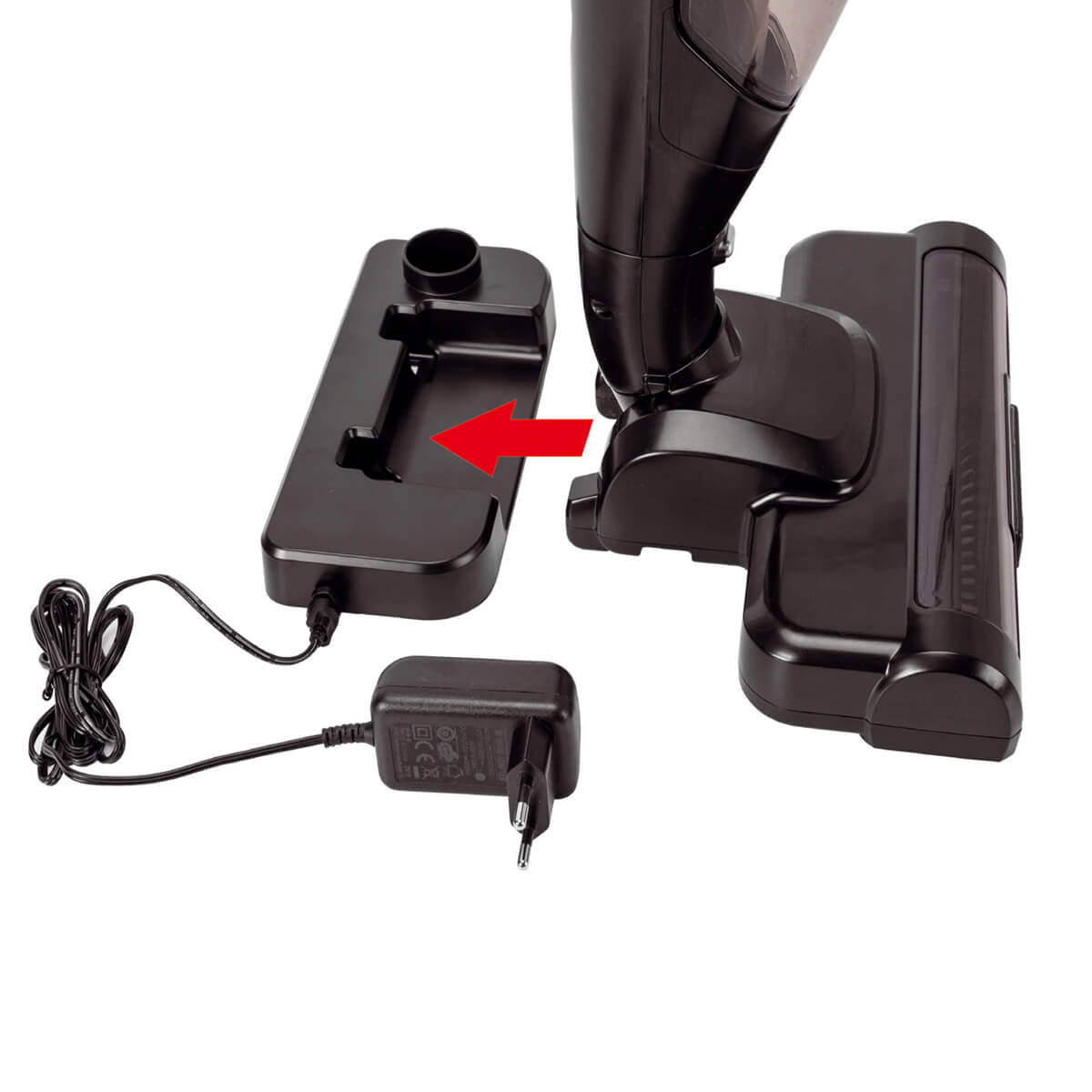 - Практична ръчна прахосмукачка със станция за зареждане и вградена батерия