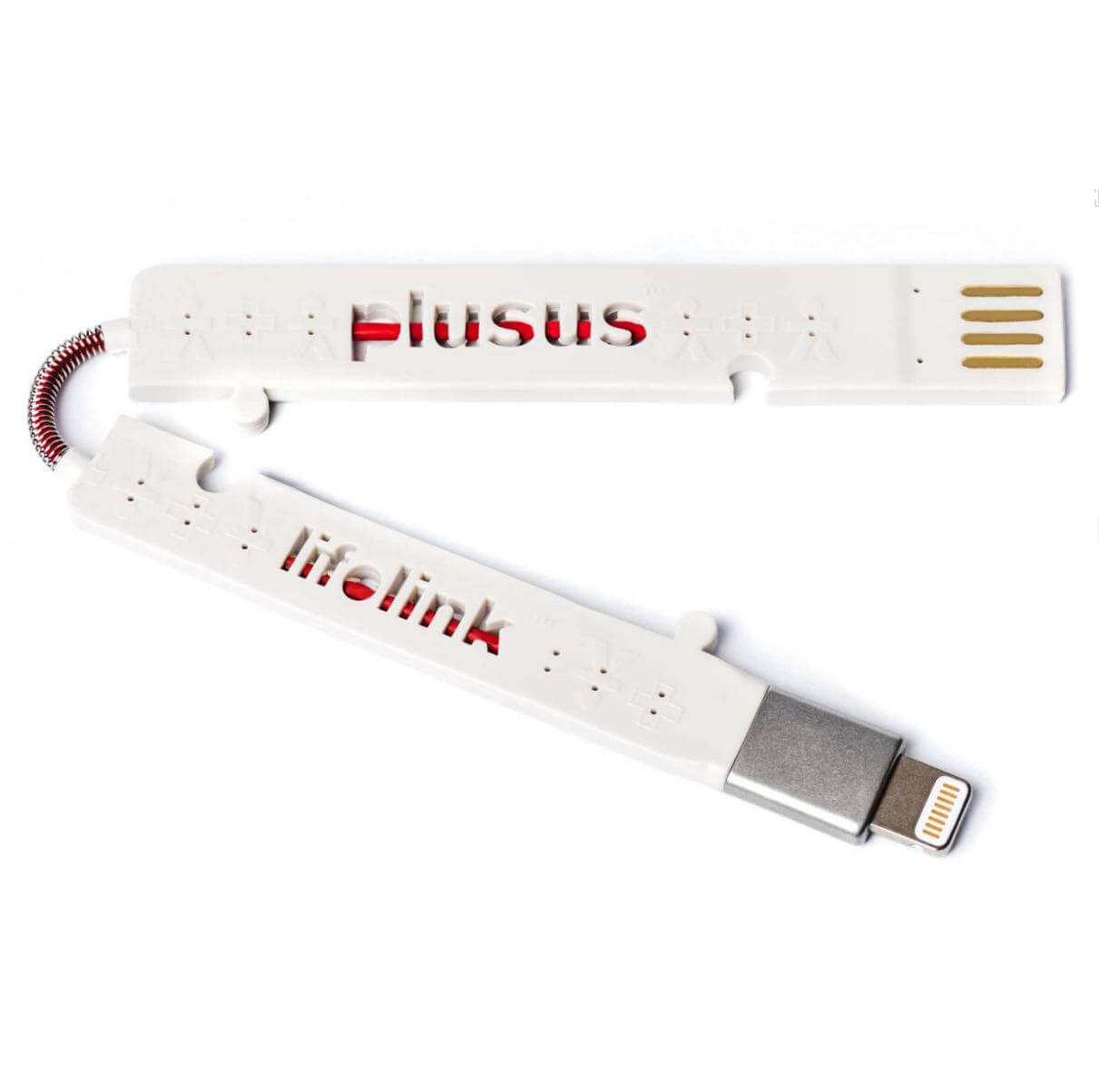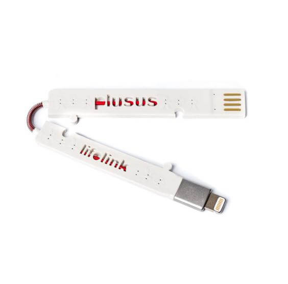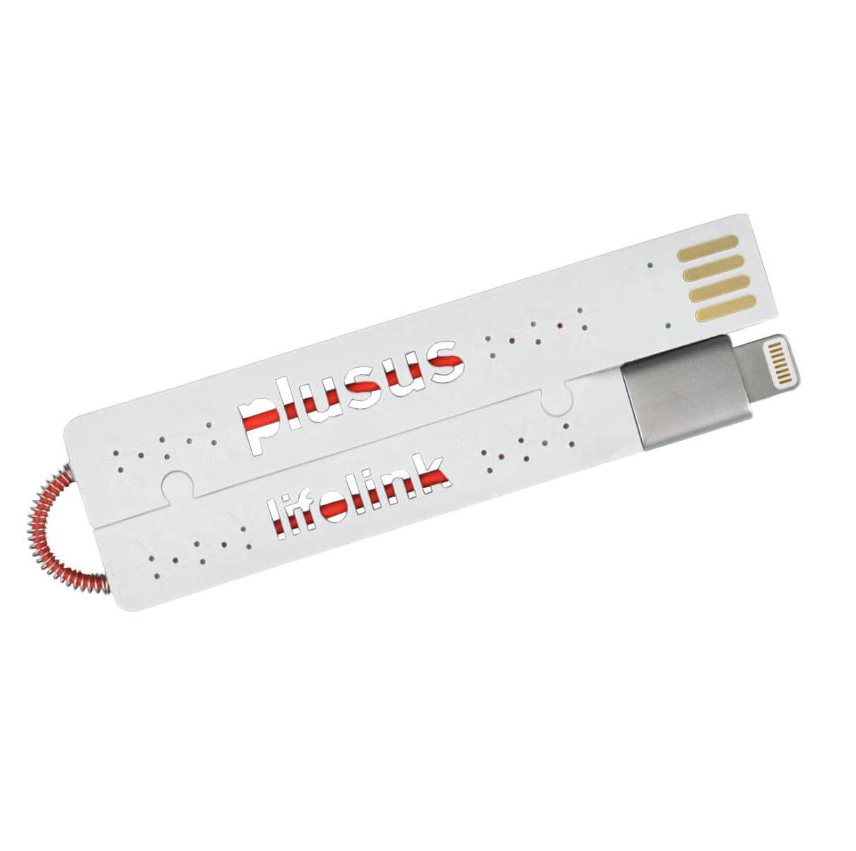 Plusus LifeLink Lightning USB Cable - най-тънкият сертифициран Lightning кабел за iPhone, iPad и iPod (18 см.) (бял-червен)