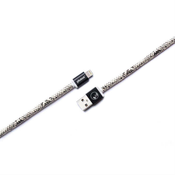 PlusUs LifeStar Handcrafted Lightning Cable - ръчно изработен сертифициран Lightning кабел за iPhone, iPad и iPod (25см.) (черен-бял)