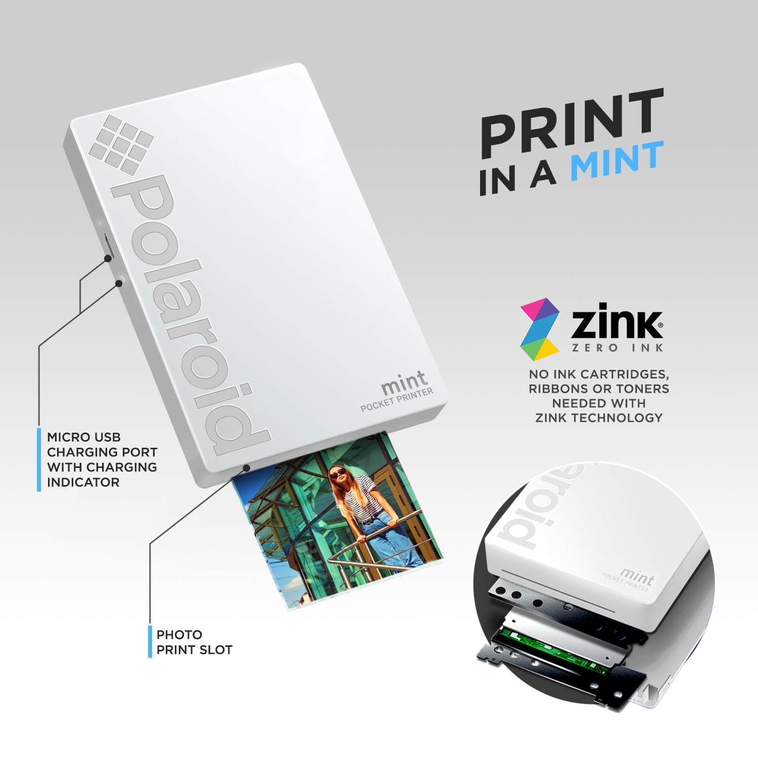 - Модел: Mint Pocket Printer Zink Zero Ink Technology