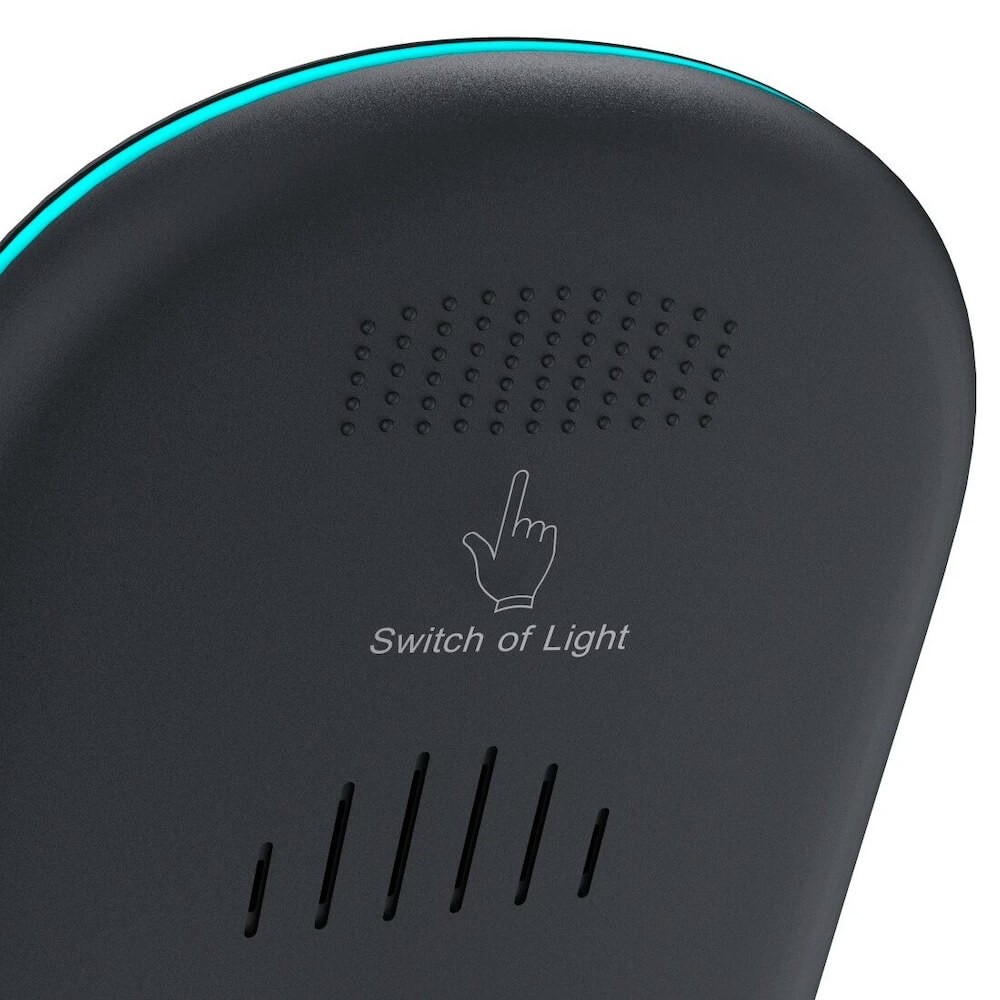 Този безжичен заряден стояк не само че осигурява бързо зареждане, но и предлага удобство при гледане на видео или работа с телефона. Неговият дизайн позволява да го използвате и като настолна поставка, което е особено полезно за видео разговори или гледане на филми.