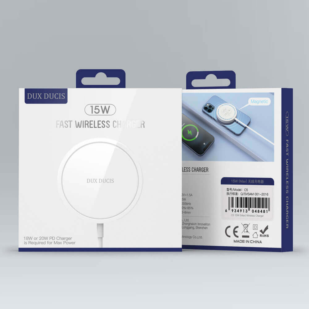 - В комплекта: 1 х Dux Ducis USB-C Magnetic Wireless Qi Charger 15W, 1 х ръководство за употреба