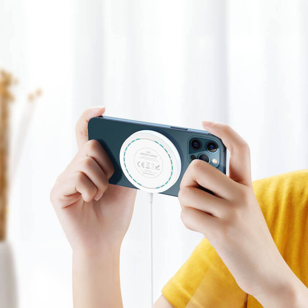 С магнитното Magsafe зареждане, вашият iPhone 13 или 12 ще се зарежда бързо и лесно. Просто поставете телефона си върху зарядния модул и оставете мощните магнити да свършат останалото. Дебелината на устройството от 9.5 мм го прави изключително удобно за носене навсякъде.