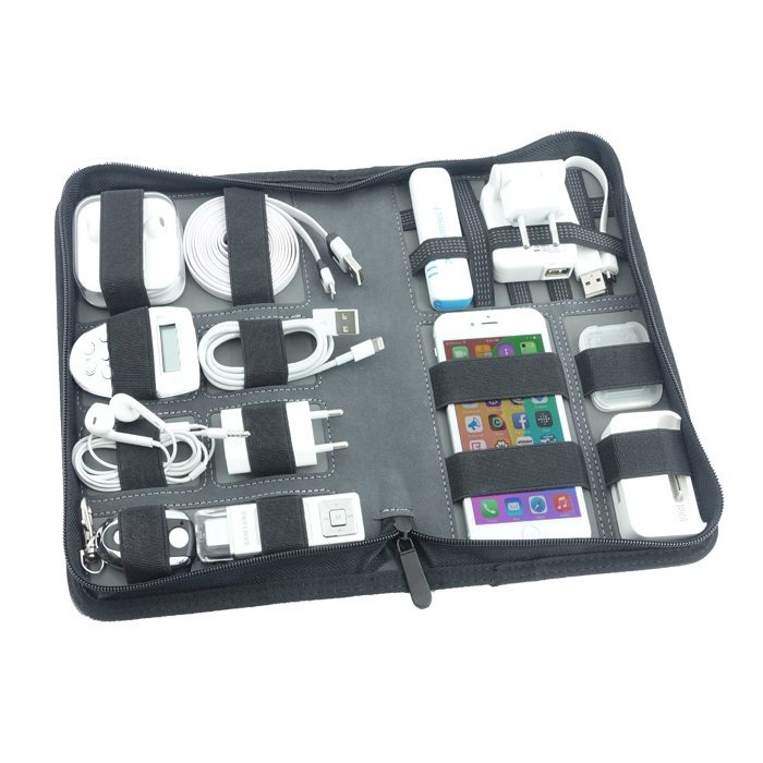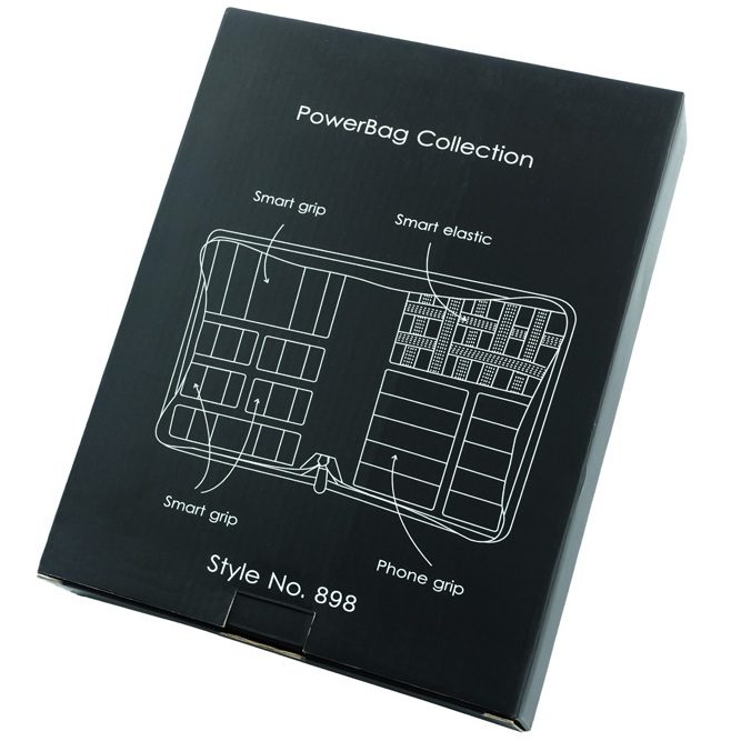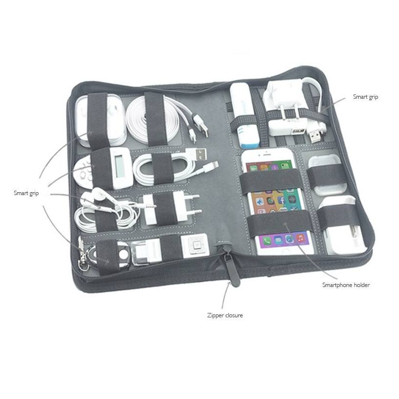 § Налични ластици за организиране и надеждно прикрепяне на телефон, зарядно, слушалки и т.н.