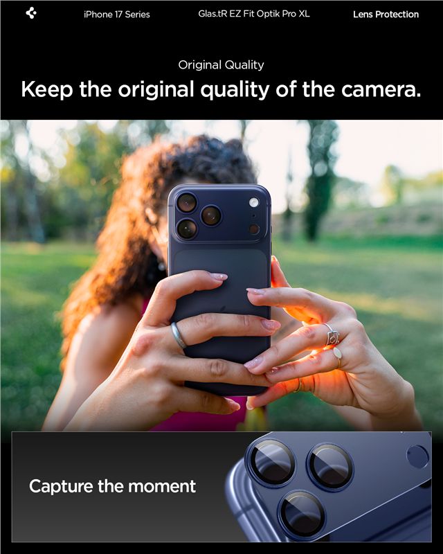 - Протекторът за камера EZ Fit Optik Pro XL предпазва обектива на вашия iPhone 17 Pro от всички ъгли и осигурява прецизен и лесен монтаж. Лесен за инсталиране, без риск от грешки.