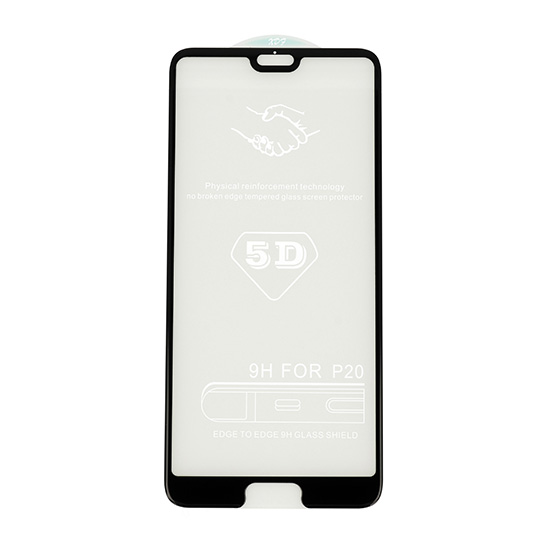 Premium Full Glue 5D Tempered Glass - обхващащо и ръбовете стъклено защитно покритие за дисплея на Huawei P20 (черен)