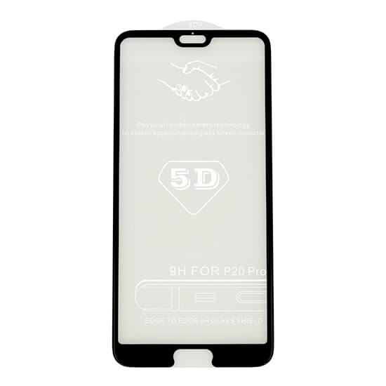 Premium Full Glue 5D Tempered Glass - обхващащо и ръбовете стъклено защитно покритие за дисплея на Huawei P20 Pro (черен)