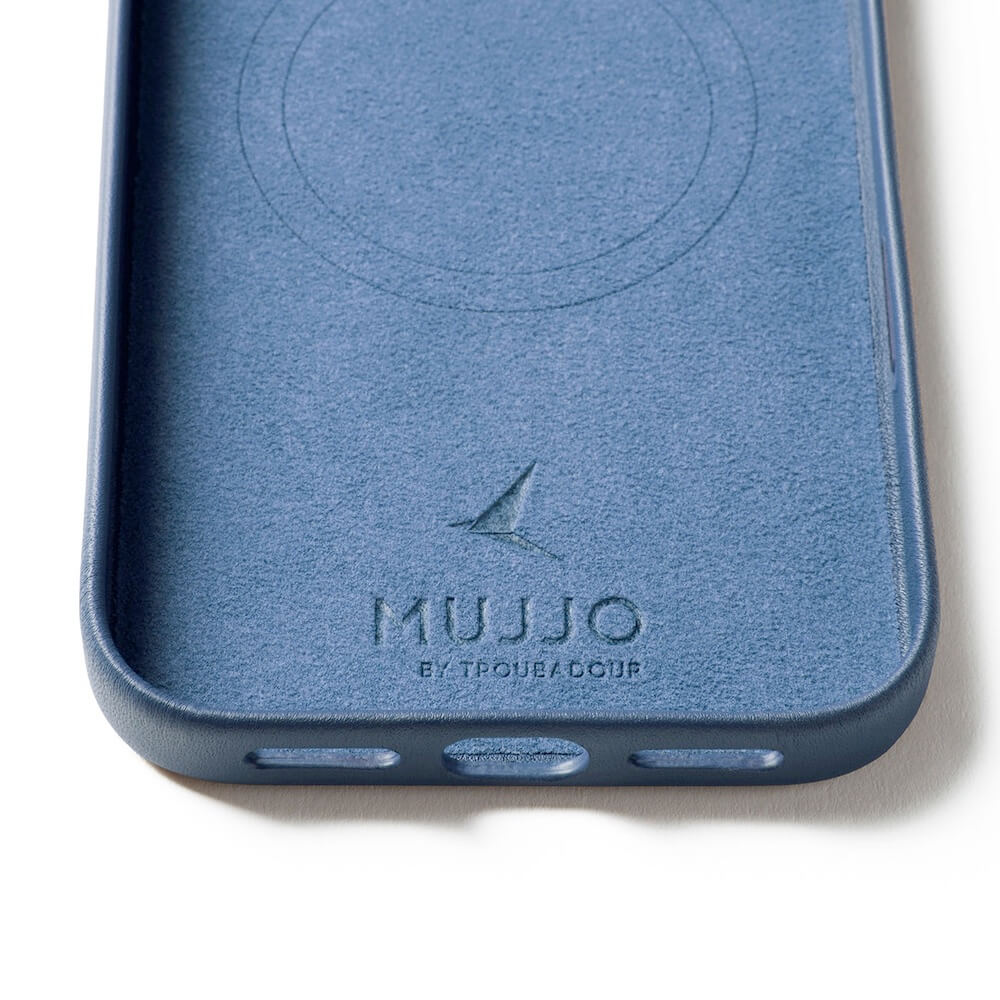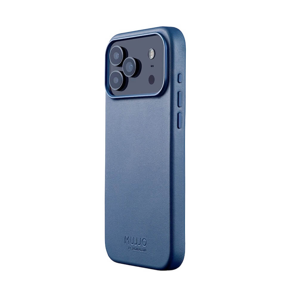 Премиум кожен (естествена кожа) кейс с MagSafe за iPhone 17 Pro Max - Mujjo Full Leather MagSafe Case (син)