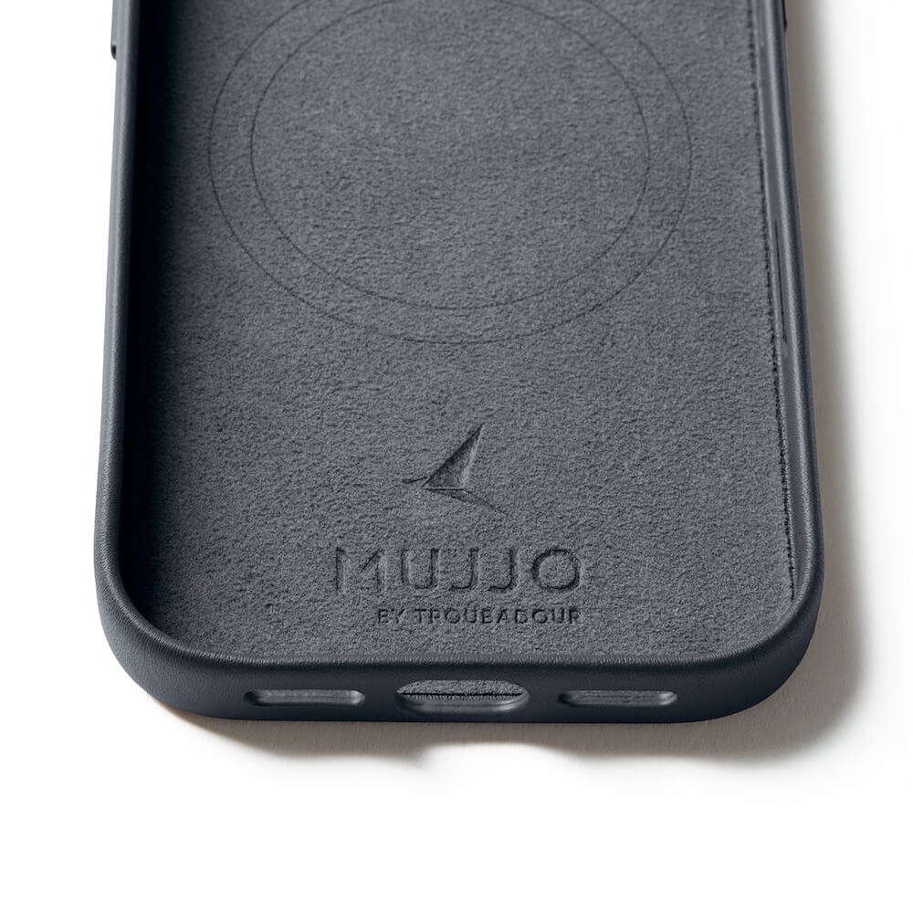 Премиум кожен (естествена кожа) кейс с MagSafe за iPhone 17 Pro - Mujjo Full Leather MagSafe Case (тъмносин)
